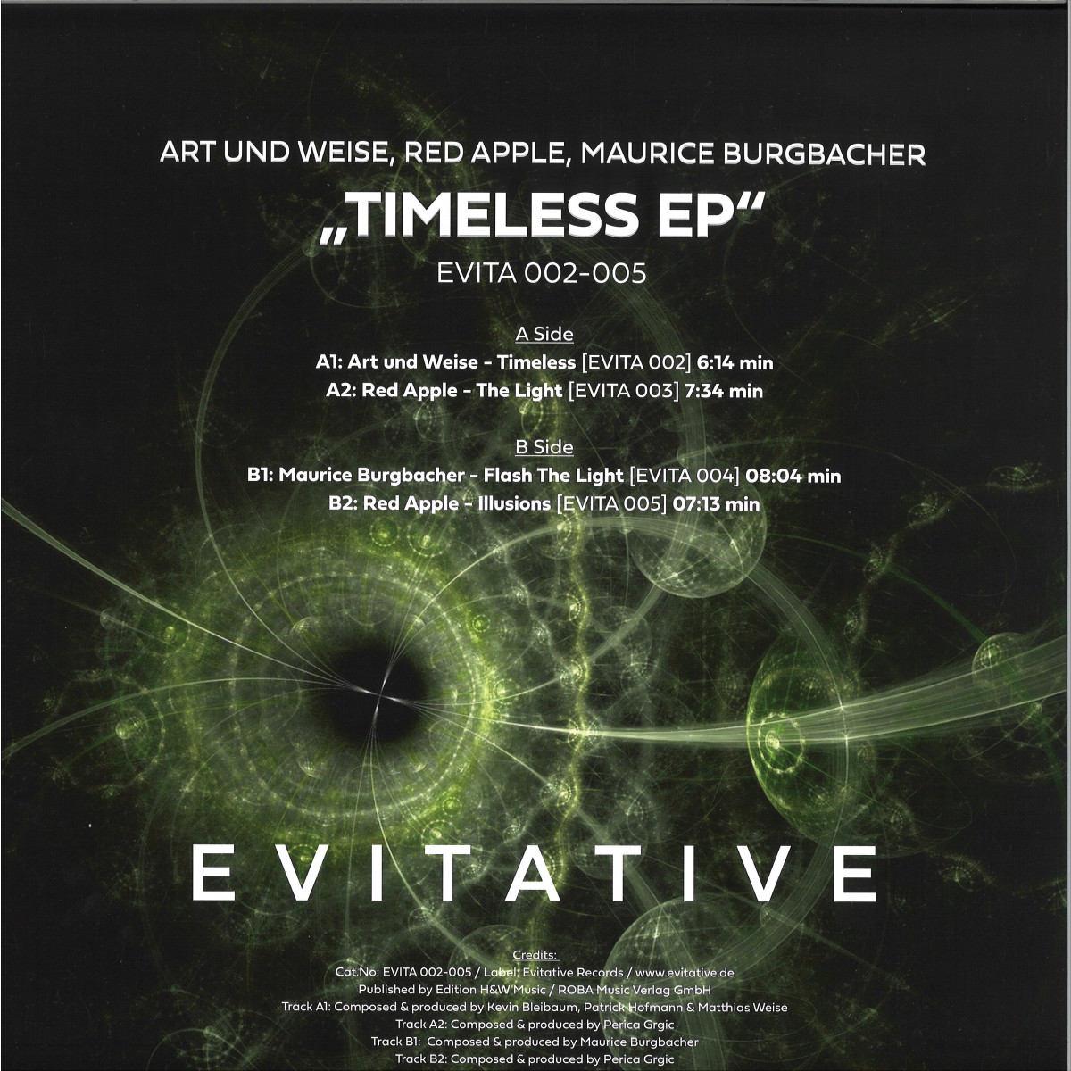 Evitative Records ist ein junges Techno-Label aus Deutschland und präsentiert technologische Tanzmusik, sorgfältig ausgewählt, mit Stil und in vielfältigen Variationen. Neben digitalen Veröffentlichungen werden ausgewählte Tracks in einem Album vereint und auf Platte gepresst. Die neue Vinylpressung "Timeless" (EVITA 02-05) besteht aus vier melodische Techno Tracks von den deutschen Artists "Art und Weise", "Red Apple" und "Maurice Burgbacher". Kraftvolle Stücke mit klaren Linien, die Geschichten erzählen und neue Geschichten schreiben.
