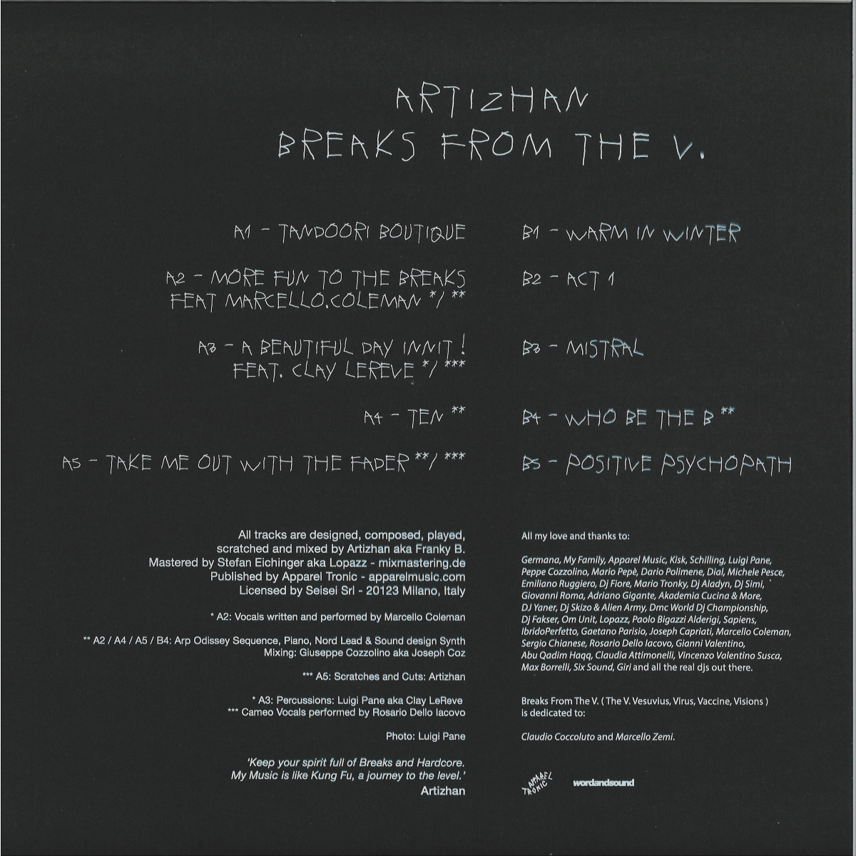 Apparel Tronic is proud to present you the new album by Artizhan called Breaks From The V.