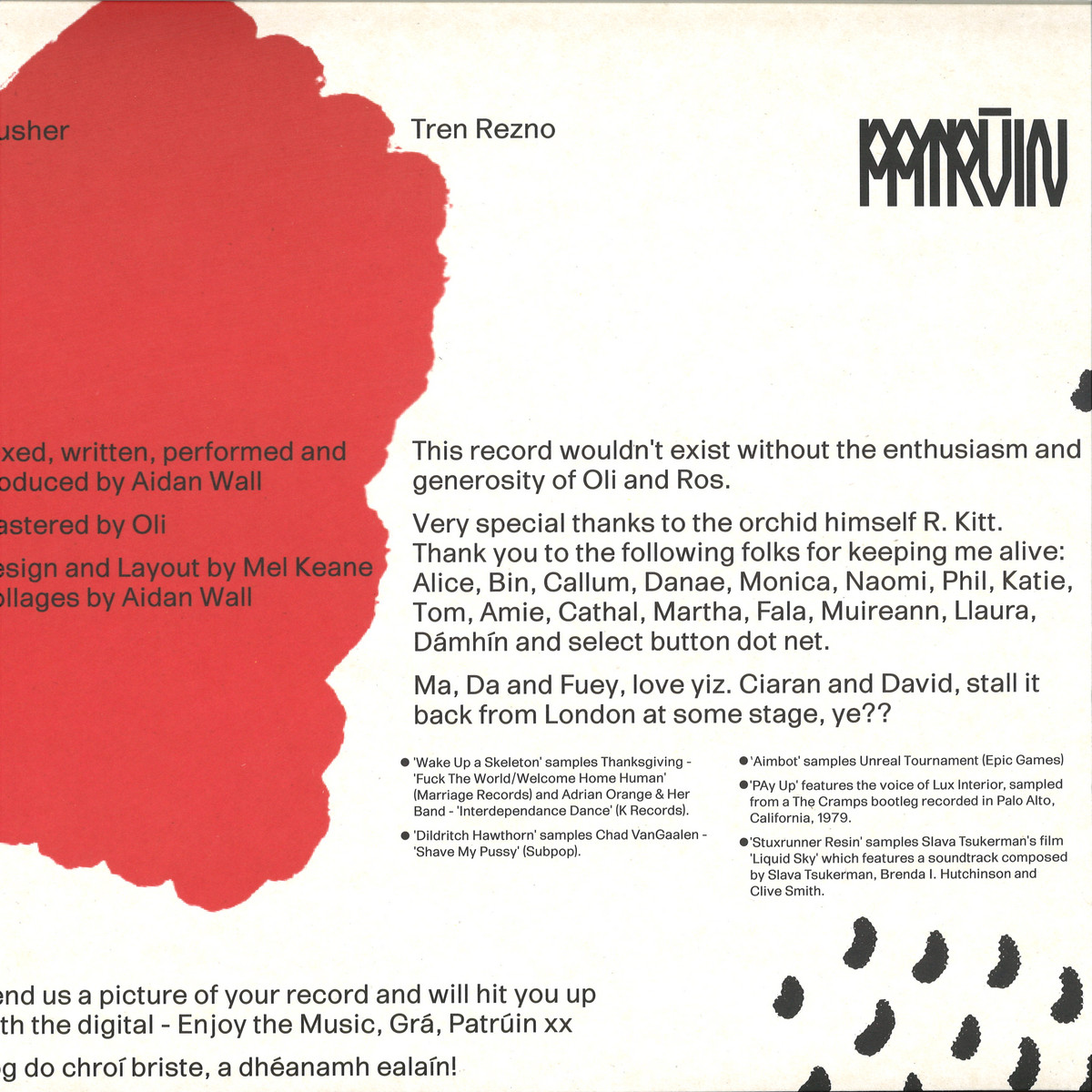 Tren Rezno Is The First Release By Blusher, A Music Project By Artist, Writer, And Game Designer Aidan Wall. Produced Between Dublin And Amsterdam Over The Course Of A Couple Of Years, Tren Rezno Is A Spectral Mixture Of Ambient Compositions, Strummed Songs, Field Recordings, And Club-focussed Tracks That Are Just As Likely To Make The Listener Weep As They Are To Make Them Dance. Drawing From Influences As Varied As New York No Wave, Playstation Game Soundtracks, And Traditional Irish Music, Tren Rezno Is A Strange Collage Of Thoughts And Impressions That Hints Towards Contemporary Experiences Of Precarity And Anxiety, Just As It Hints Towards The Timeless Experiences Of Splinted Affection, Singing Into A Pint With A Friend, Or Falling In Love On The Dance Floor.