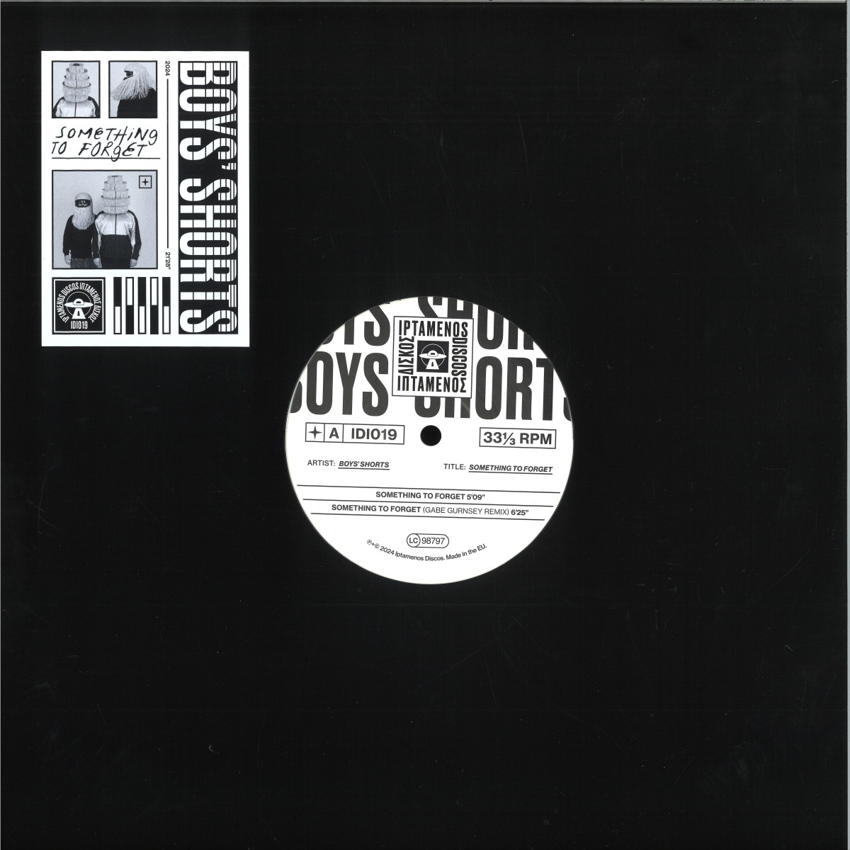 Nach ihrer von der Presse hochgelobten "New Era" EP, welche bei RBB Radioeins Monatelang auf höchster Rotation lief, und dem Remix für Local Suicide’s "Eros Anikate" sind Boys' Shorts mit "Something To Forget" zurück auf Iptamenos Discos. Das Duo besteht aus Vangelis und Tareq, die seit über einem Jahrzehnt befreundet sind und ein äusserst erfolgreiches Jahr hinter sich haben, mit einer Reihe von Veröffentlichungen auf Permanent Vacation, Live At Robert Johnson, HE.SHE.THEY & Pets Recordings und DJ-Sets in angesehenen Venues wie dem Londoner E1 und dem Berliner Berghain sowie einem offiziellen Remix für Alison Goldfrapp und als Support auf ihrer Tour. "Something To Forget", die erste Single und gleichzeitig Titeltrack, beginnt mit einem starken Kick und einer markanten Snare, die durch den Mix drückt und zu einer treibenden Kraft wird, die den Track verankert. Die federnde und energiegeladene Bassline steht im Kontrast zu den Texten, die etwas melancholisch sind, jedoch auf eine Art und Weise vorgetragen werden, die ihnen ein unterschwelliges Gefühl von Optimismus verleiht.