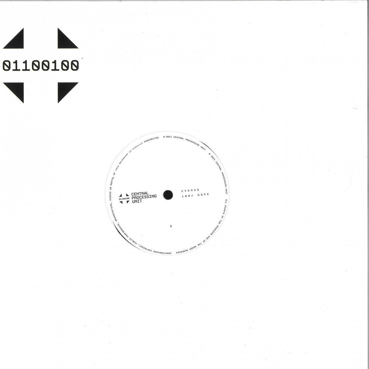 Central Processing Unit keep it 100 on for this new EP. '100% Dope' by Cygnus is CPU's 100th catalogue number, and the Texan producer delivers on the promise of the record's title with a collection of brilliantly unique electro joints.