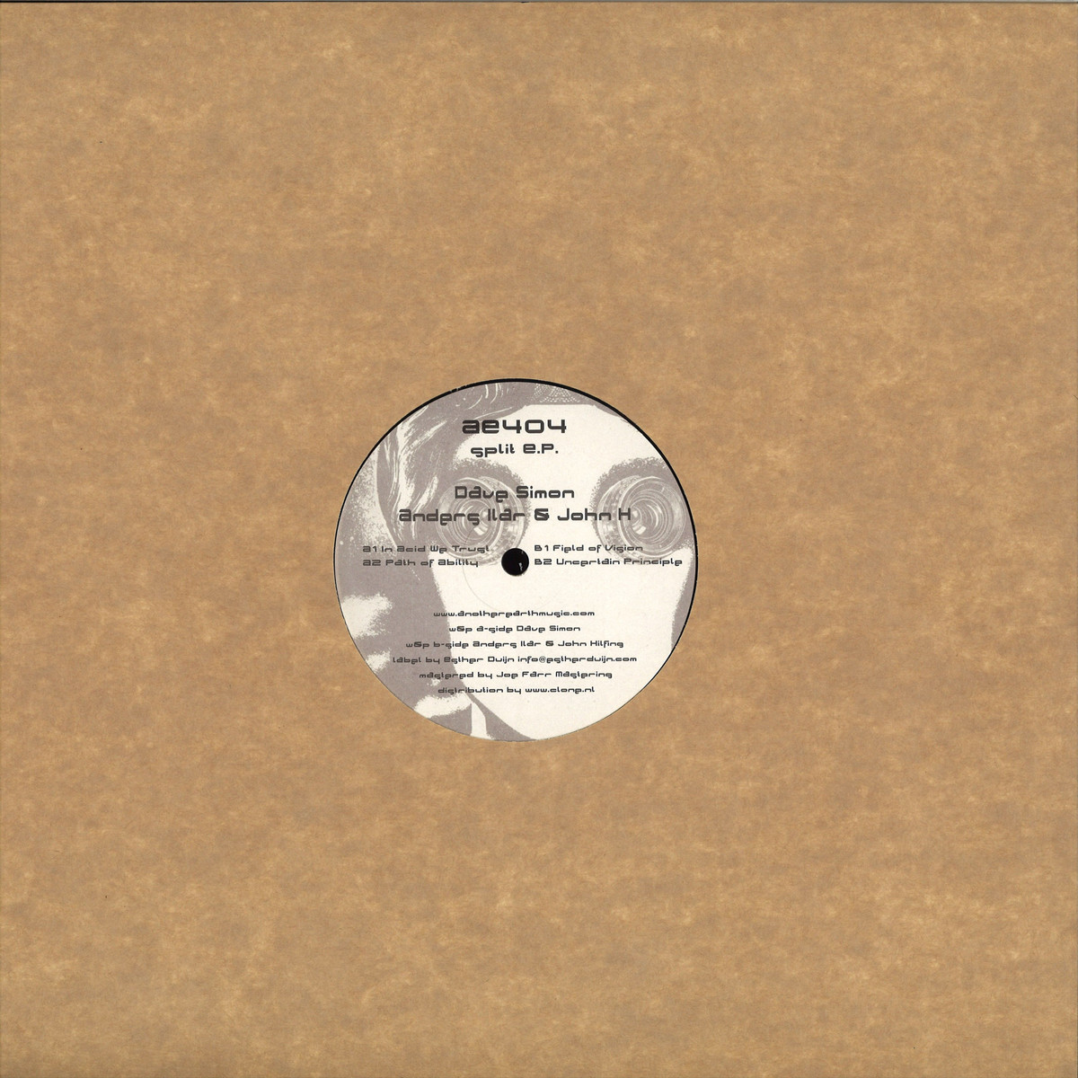 The fourth release of Another Earth, a small Dutch vinyl only label with limited 300 pressings, has finally arrived. The A side is proper techno created by Dave Simon. A1 In Acid We Trust is a peak time acid techno track and A2 Path of Ability has a warm Detroit feel. The B side by Anders Ilar together with John H is more obscure. Deep weird acid techno that seems to come from another planet. Uncertain Principle feels like its exploring the surface of a strange planet with it's weird soundscapes and Field of Vision is a deep obscure acid track with a proper groove. Both tracks have a great analog feel to them.