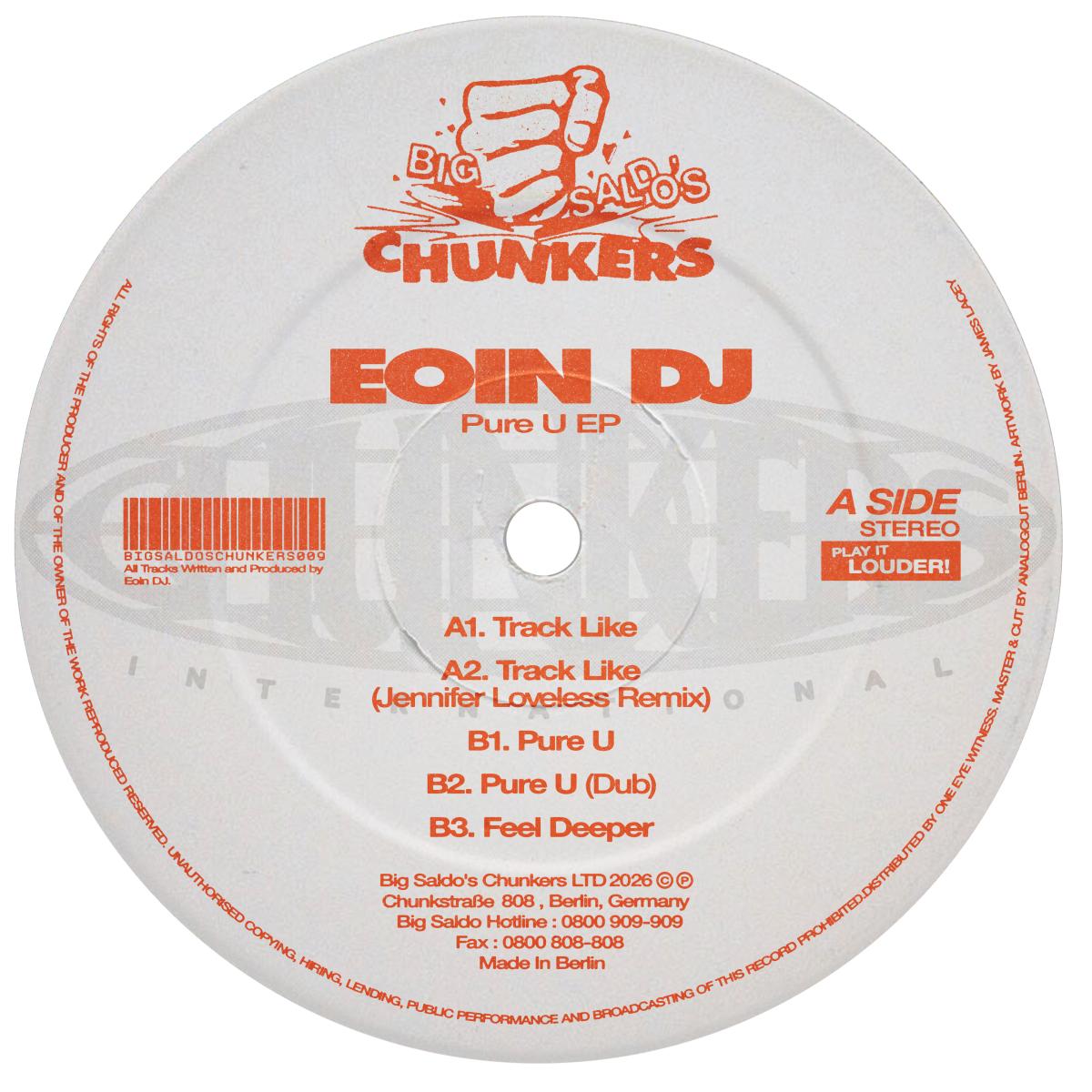 A producer who requires no introduction – Jennifer Loveless join the Chunkers fold with a full-bodied remix of ‘Track Like’. Lock in for a funky maximal re-rub with the attitude turned up to 11. Back in Eoin DJ’s corner, the crisp ‘n’ punchy ‘Pure U’ is driven by fat kick drums, euphoric chords and a chunky rolling bassline. Exquisite stuff. A tight Dub version is included in the pack. The EP rounds out with the perky ‘Feel Deeper’, which channels ‘90s New York house and circuit sounds and is built around a hooky vocal line and rhythmic drums.