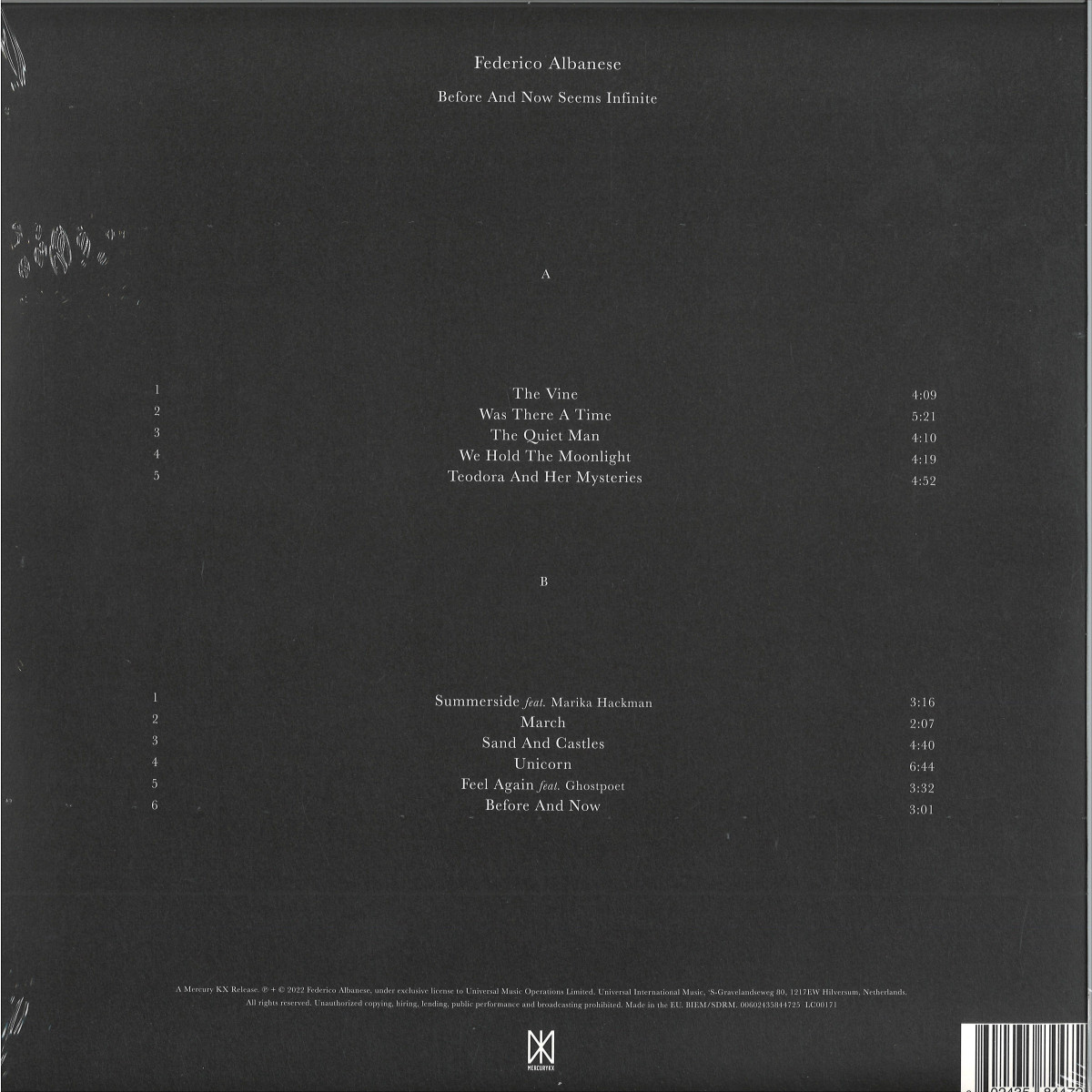 Following two stunning EP’s earlier this year, Federico Albanese now releases his debut album on MercuryKX. Featuring collaborations with Marika Hackman and Ghostpoet, the project centres itself around memory: “ We have the power to change the way we recollect moments of our lives. I like the idea of being able to craft my own memory the way I wanted to remember it. Music is the vehicle I use to find these moments, hold them in time. It allows me to remember something from a very special perspective, creating different possibilities” - Federico Albanese.