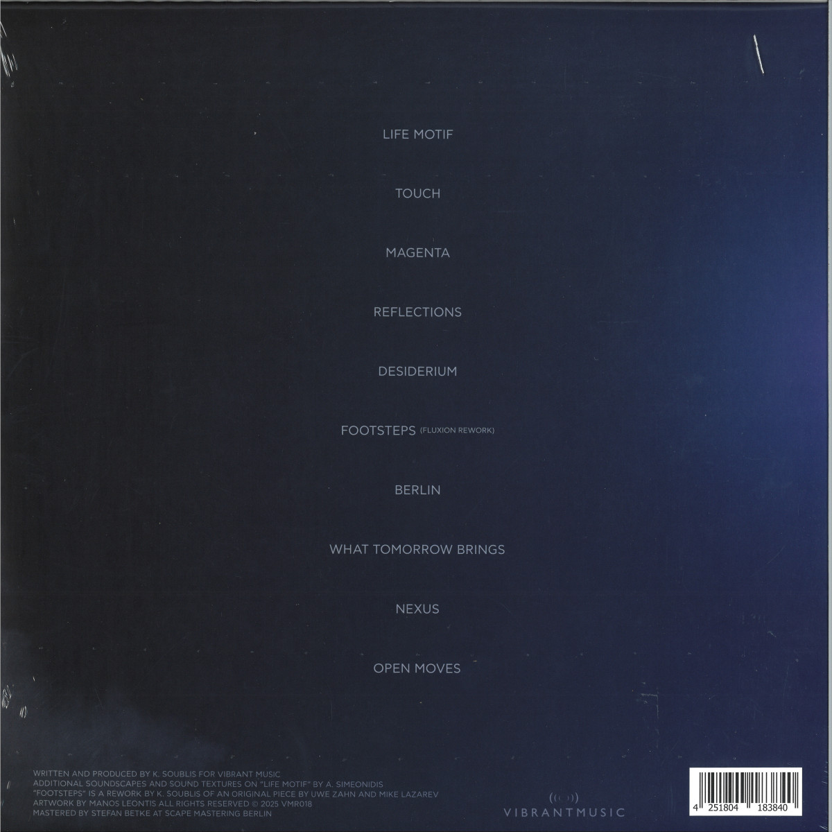 Haze is a broad selection of pieces that was recorded between 2023- 2024. The music is moving from more slow cyclic compositional pieces on Life Motif, Nexus, Desiderium, to ambient dub pieces, on Magenta and Touch, on to more euphoric and uplifting ones on Footsteps, Berlin and What Tommorow Brings, reflecting on artist's need to tell stories. As a whole Haze showcases the artist's versatility on moving and combining different genders with his own distinct crafted sound, bringing a bold always fresh unique view, making the album an indulging and intriguing listening experience as a whole.