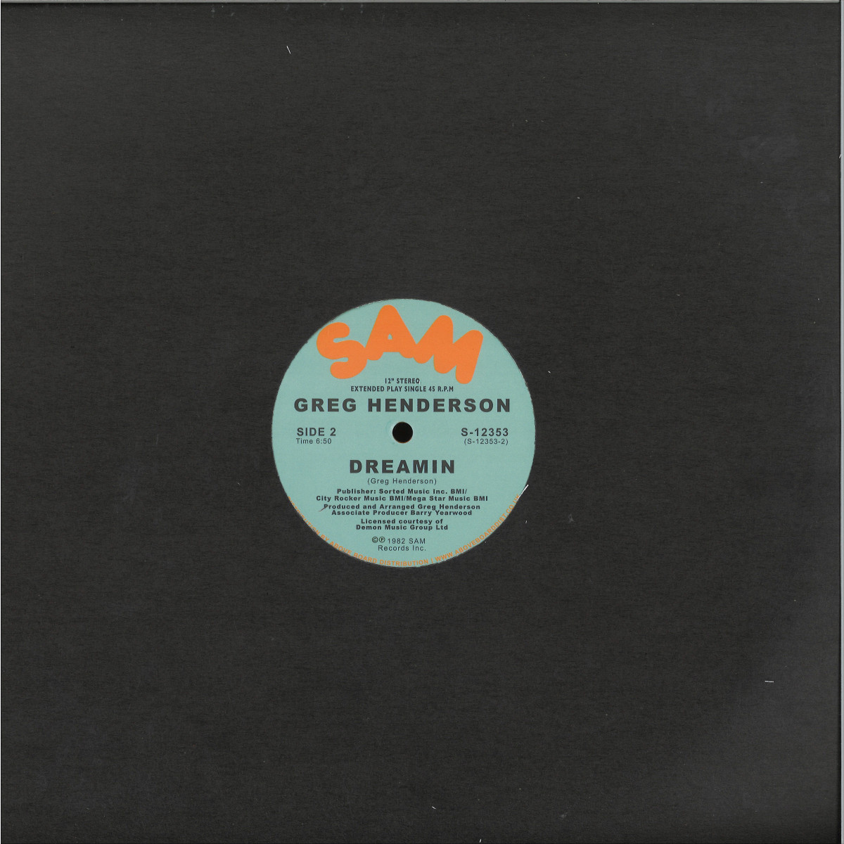 Greg Henderson only released a handful of records during his career (including the incredible Henderson & Whitfield - "Dancing to the beat") and was also involved in the production of some other classic Boogie rarities (Masterforce - "Don't Fight The Feeling" , Rome Jeffries - "Good Love"). "Dreamin" has always been a sought after record, often fetching collectors prices of £100 - £200 a time. A sublime cut for all lovers of Disco, Boogie, Funk and Modern Soul. Now made available again, legitimately licensed, remastered and reissued in conjunction with SAM Records New York City.