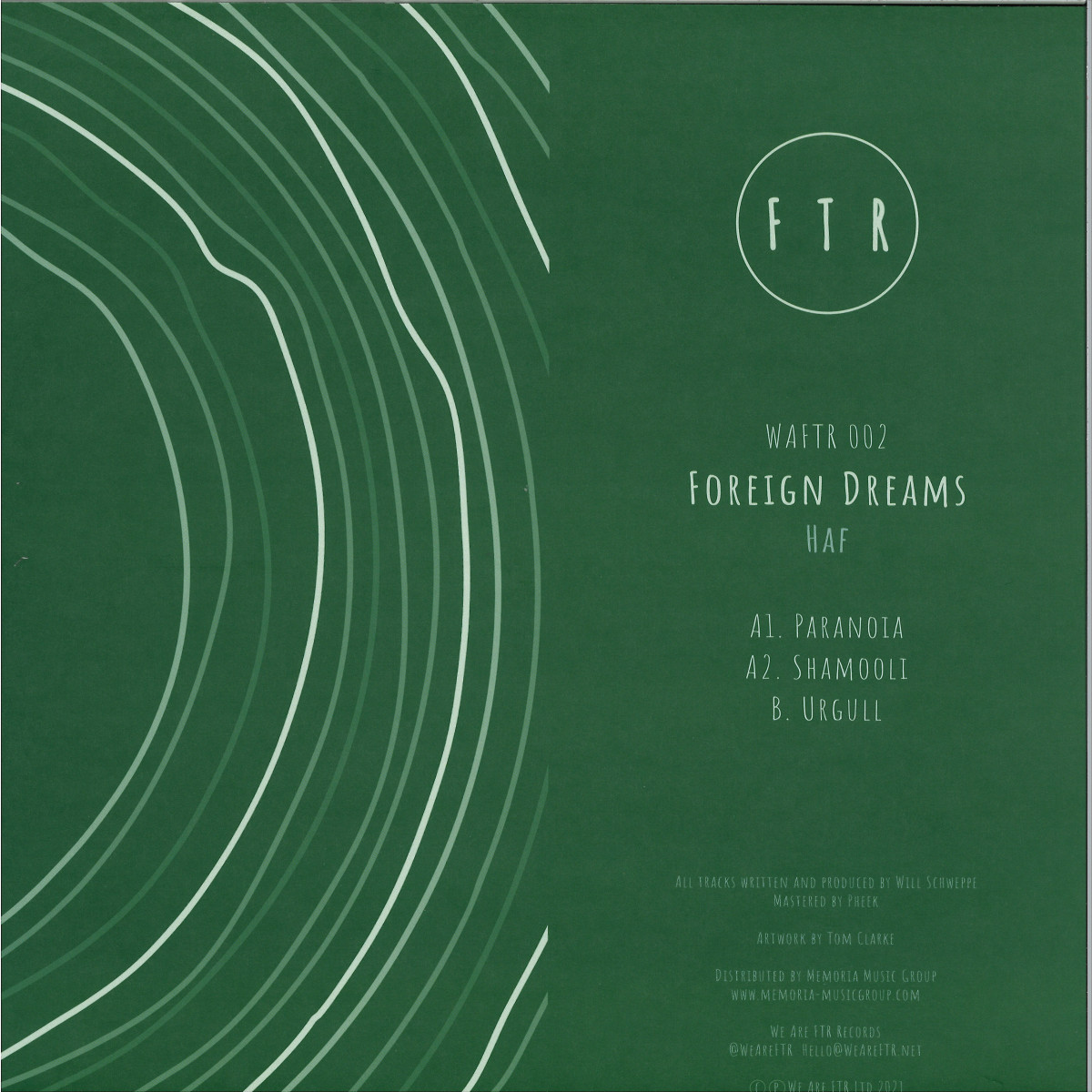 We Are FTR welcomes Haf to the label as the collective returns with the talented artist's Foreign Dreams EP. There's much to enjoy here starting with the powerful driving opener "Paranoia", a dark and heady affair perfectly suited to keeping things moving into the small hours. "Shamooli" follows up with intricate shuffling hats, groovy bassline and plenty of atmospheres to get lost in. The immersive and meditative cut "Urgull" stretches out over the full B-side rounding off the EP in fine style with a more laid back feel.
