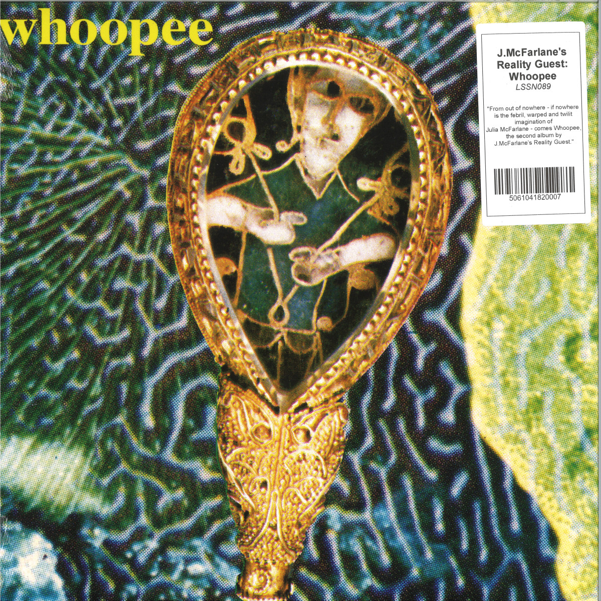 From out of nowhere - if nowhere is the febrile, warped and twilit imagination of Julia McFarlane - comes Whoopee, the second album by J.McFarlane’s Reality Guest. Whoopee is an esoteric, kaleidoscopic movie in music form directed by Julia McFarlane and co-conspirator Thomas Kernot. Full of life, breakbeats and smokey vignettes on the fragile nature of interpersonal relationships, Whoopee is a stylistic evolution from everything McFarlane has done before. Surreal, beautiful in parts and replete with the aching wisdom McFarlane’s songwriting has always promised, this Reality Guest pulls back the curtain on a whole scene of naked truth. Recorded in Melbourne in bursts since the release of 2019’s Ta Da, Whoopee features a new sound palette and band member in Kernot. The duo dive deep into electronic pop tropes, mining digital synths, samples, breakbeats and deep bass grooves, largely dispensing with live instrumentation. If Ta Da took twists and turns with your expectations, offering a Dada-ist, monochromatic take on pop music, Whoopee is McFarlane’s subterranean love-sick pinks, reds, greens, purples and blues. Becoming something of a tradition, the album starts with an instrumental intro pilfered from a 90s’ spy film or cinema intro music, puffing up the listener for the heart-squeezing bathos of Full Stops. Over a bleary backdrop of walking bass lines, jazz- inflected keys and smoked-out atmosphere, McFarlane’s poetry narrates the fragile state of a relationship: “You put a full stop where I thought there’d be a comma, I want the story to continue even with all the drama.” Over a palpable pain, the narrator is revelling in the drama of a relationship, addicted to tumult and heightened emotion. On Sensory, a space age bachelor lounge pad ballad, the converse state of the previous song is explored, here the narrator is battling the numbness of being out of the drama, stuck in a sensory-deprivation tank, anaesthesized and battling to emerge from the fog. Wrong Planet explores an otherworldly pop music, hewing a bright hook out of a sense of confusion. A bona-fide, sing-along chorus bursts out of the narrator musing on the absurdity of existing in this reality. It speaks of one of Julia McFarlane’s main talents, her knack of inspecting human relationships and states with a clear perspective, like an alien visiting Earth and realising everything we are is really, really strange. Whoopee is both more accessible than previous Reality Guest work and somehow more obfuscated. Where the production on Ta Da was dry, sharp and strange, this Reality Guest is blurred, almost smeared with the effluvium of 90s+00s culture and existence. Through it all, it’s hard to deny the undeniable pull of the songs. Precious Boy carries on the lounge theme with a whole sampler of cut up sounds fading in and out of the haze as McFarlane’s voice is right up to the speaker cooing and free- associating, maybe in love or maybe in confusion... maybe they’re the same thing? Sometimes the listener is invited to just bathe in the tone of the vocal, as on Apocalypse, where the texture and timbre of the vocal is luxurious, bathing in piano tinkles and double bass throb. On lead single Slinky, a cut up beat reminiscent of Washingtonian Go-Go drum patterns leads, the song slipping through your fingers, elusive and presenting sound as pure pleasure. Closer Caviar jumps back into the broken breakbeats of a surreal funk, fuelled by the sensory pleasure of the music, a hedonistic whirl in rapture, the narrator now living life to the fullest in all its giddy heights and deep troughs. This is the album’s main character fully-actualised and in the terrible, beautiful moment.