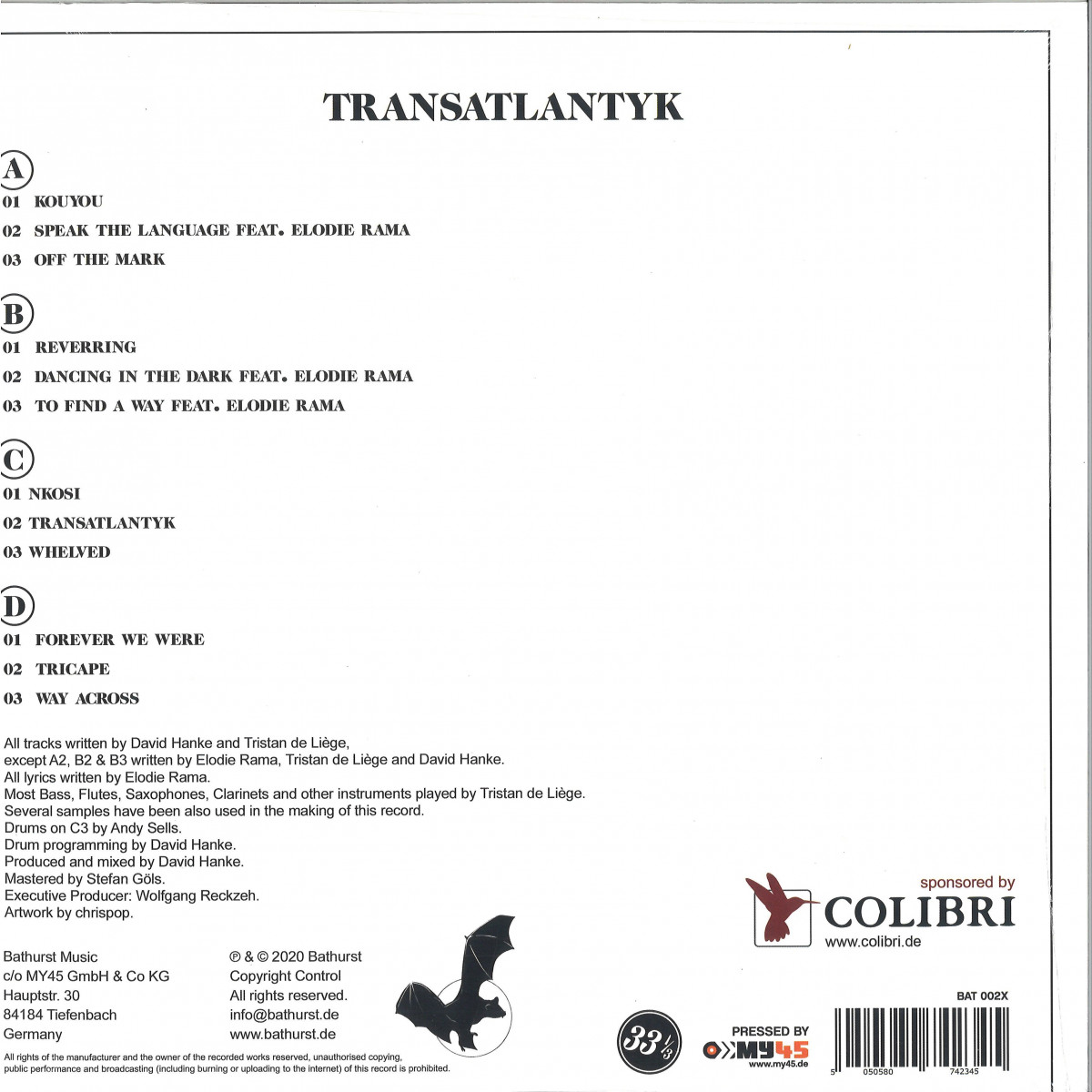 Tristan's experience as a neo-classical musician was the ideal foil for Hanke's skills with a sample and production expertise. Both shared a love of the more lush and cinematic end of instrumental Hip-Hop and Downtempo music. This sound partnership is evident throughout the album, but particularly on tracks like Nkosi, and the title track, where luscious string sections dance playfully with fractured, programmed beats; or the melancholic opener, Kouyou, where more laid back drums underpin muted horns and joyous harps.