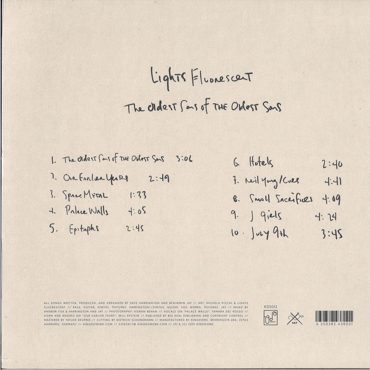 Made up of Dave Harrington (Darkside/Dave Harrington Group) and Benjamin Jay (NDF/Benoit & Sergio), Lights Fluorescent is, as the two describe it, an ‘experiment in the spaces between song and texture, idea and reference, past and present.’ On their debut album, The Oldest Sons Of The Oldest Sons, the duo develops an atmospheric, slant-pop sensibility that lists toward the experimental tendencies of improvisational and ambient music.