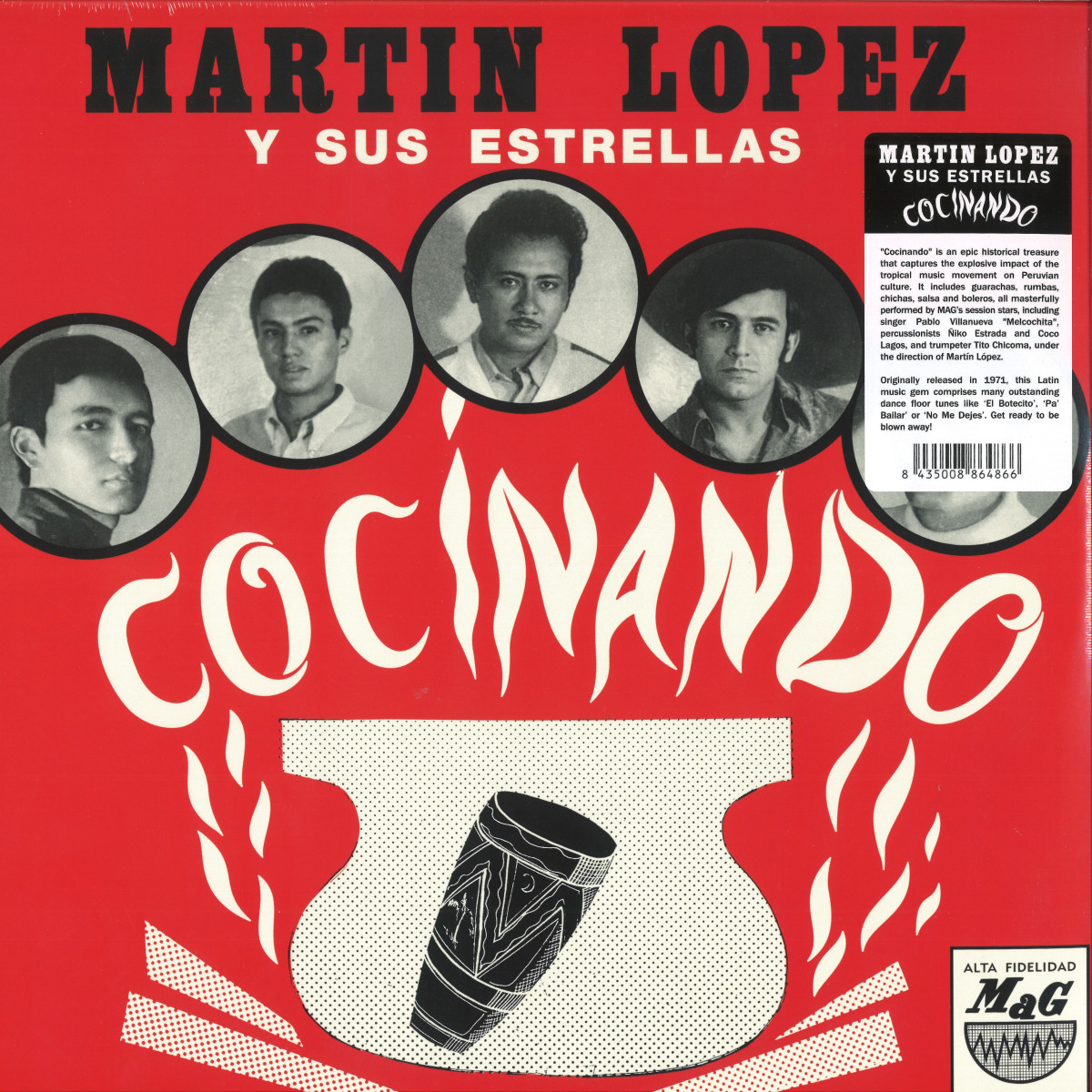 In 1969, singer and police lieutenant Pedro Gregorio López started recording a series of instrumental tracks and songs on the MAG record label in Peru, ranging from guaracha to cumbia, all cooked with musical eclecticism and simmered to appeal to a wide audience. Many of these musical ingredients combined on the 1971 album entitled "Cocinando", in reference to the similarities between Peruvian cooking and tropical music. López began his career as a singer and orchestra conductor many years earlier, when he joined the backing singers for Lucho Macedo's Sonora. After completing his police training, he adopted the stage name Martín López, in order to preserve the anonymity his job required. Between 1969 and 1971 Martín López y sus Estrellas recorded all the tracks comprised on this album, including salsa, guarachas, rumbas, chichas and boleros, proving their knowledge and mastery of the tropical music lexicon. It is not surprising since the orchestra was made up of the most talented label’s session stars: including the double bassist Joe di Roma, singer Pablo Villanueva "Melcochita", percussionists Ñiko Estrada and Coco Lagos, and trumpeter Tito Chicoma. "Cocinando" is an epic historical treasure that captures the explosive impact of the tropical music movement on Peruvian culture.