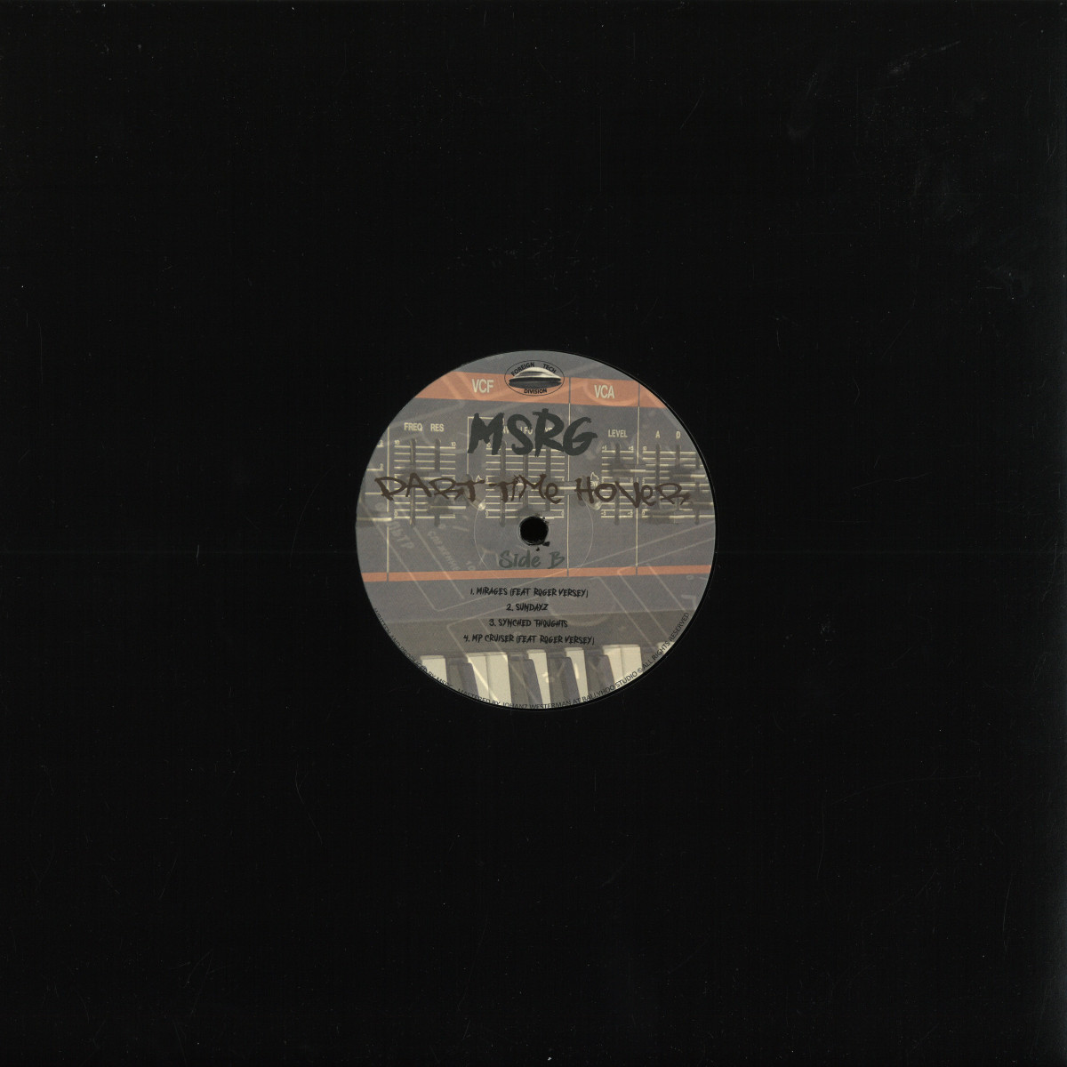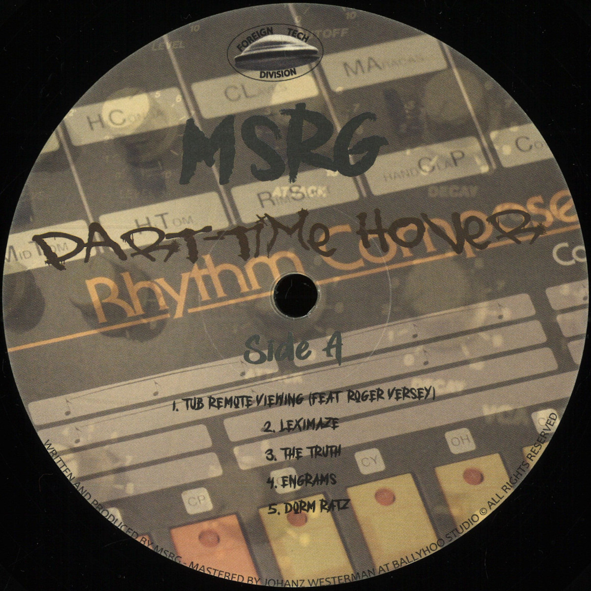 First up is MSRG; After solo appearances and eps on Solar One Records and Analog Concept Records, MSRG debuts his first full length vinyl album Part Time Hover Lp. Lovers of Detroit classic electro with warm analogue frequencies will feel right at home in the midst of these 9 compositions designed with intricate machine formulas that glide through aquatic and celestial aesthetics, dipped in both dark and colorful tones.