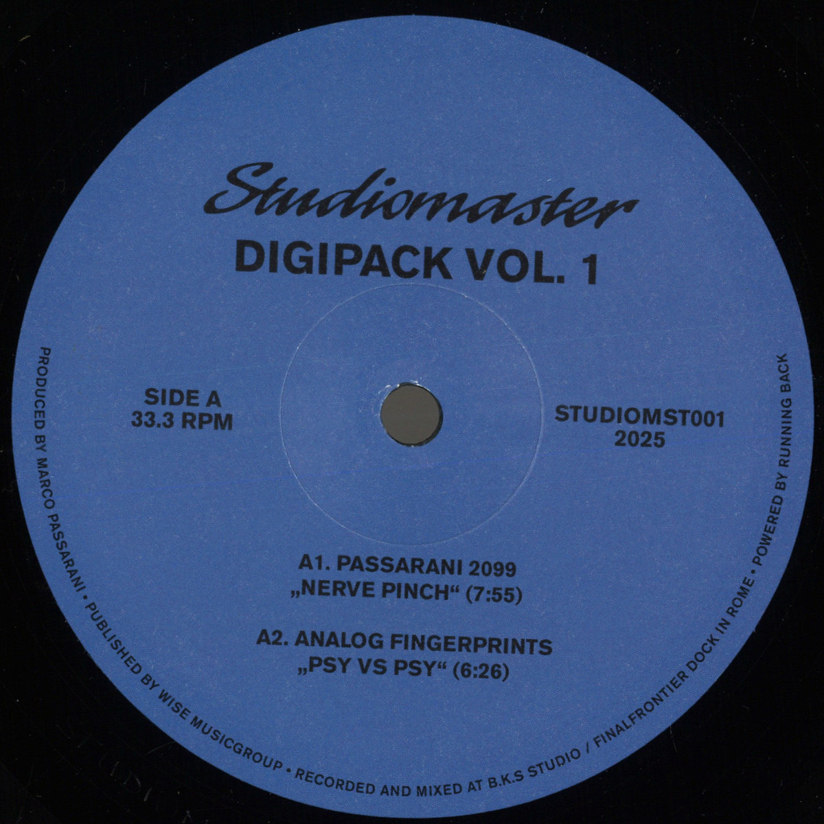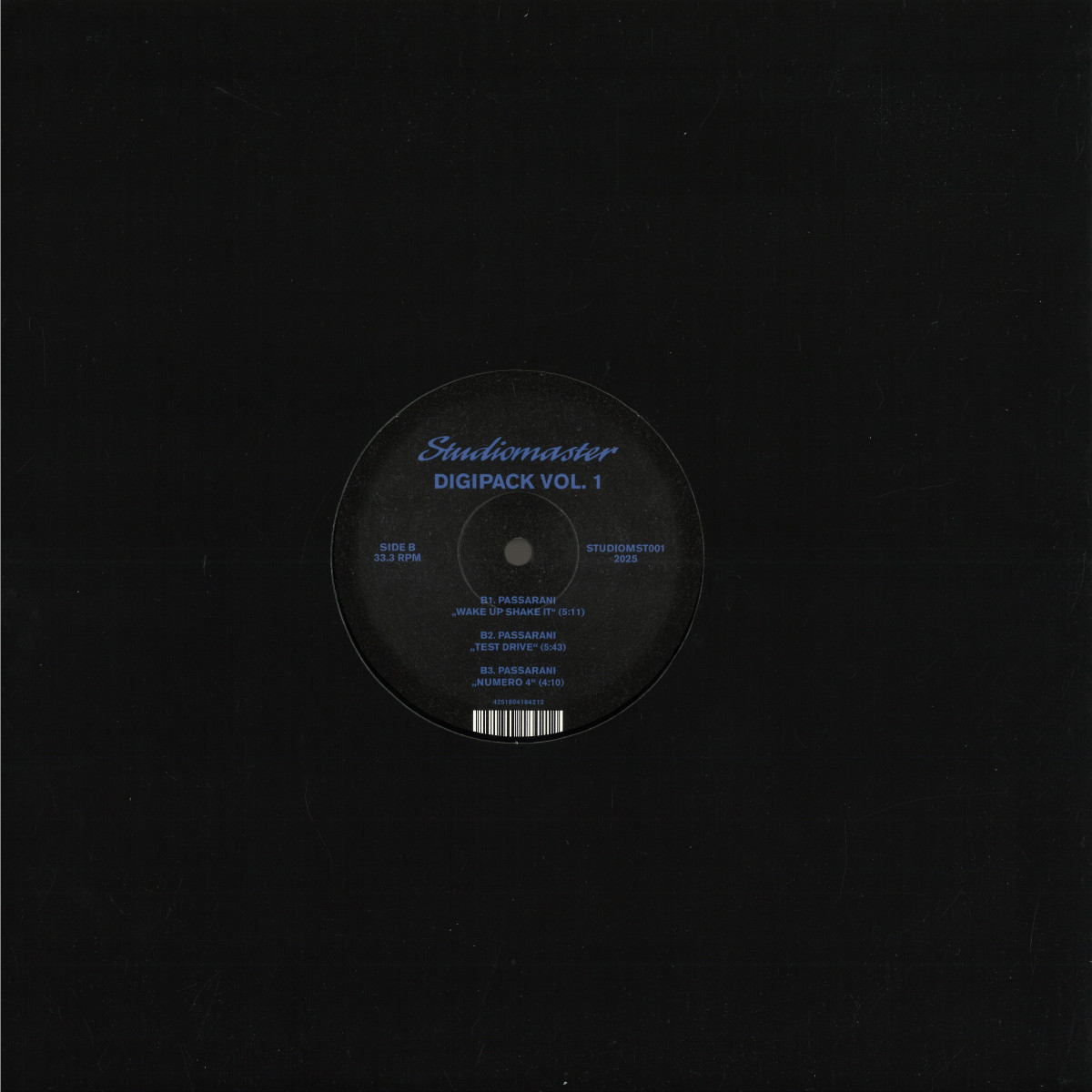 Roma techno legend Marco Passarani dusts off his Studiomaster moniker to present a selection of vibey dancefloor burners on 12” vinyl brimming with energy and packed with 303 squelch, thumping drums, moody synths and perfectly-placed vocal cuts. Marco took the Studiomaster name from his Studiomaster P7 console, which he runs his in-the-box mixes through, to bring extra dirt and character to his tracks. The Studiomaster alias first appeared on the Passarani Bandcamp page just as summer began in 2023. The newly built B.K.S. studio space was running smoothly, and the machines have been buzzing ever since, as Marco fires off vital, futuristic, acid-drenched club tracks, under pseudonyms like Passarani 2099, Analog Fingerprints, and Kids of Rotten Future. In contrast to an internet full of streaming files and AI generated artworks, the Studiomaster brand brings the look and feel of rare 12” white label promos, minimal on design and information.