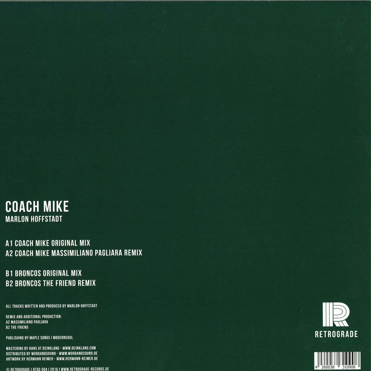 Berlin-based Marlon Hoffstadt drops 'Coach Mike', the fourth EP on his own Retrograde imprint, featuring remixes from Massimiliano Pagliara and The Friend and following a hat trick of successful releases. The four-track EP is the sophomore release from Hoffstadt on his burgeoning label, which he co-founded with Natureboy Gold and Matteo Luis in August 2015. Previously featuring the likes of Kris Wadsworth and Tuff City Kids, Retrograde provides a platform for the artists to explore music alongside other forms of expression such as art, particularly surrealism. The vinyl sleeve artwork from the first four releases, when fitted together, completes the painting 'Interaction' by surrealist Hermann Reimer. With previous releases on FFRR and Play It Down, Hoffstadt boasts a sound that is both innovative yet authentic, and 'Coach Mike' displays the sonic alchemy that the talented producer, aged only 22, has already become known for. The title track starts as a grooving acid-based cut peppered with percussion before building up suspense to a surprising yet satisfying breakdown. This is his first release without vocals, allowing him to focus entirely on creating pure soundscape. Panorama Bar resident and Live at Robert Johnson mainstay Massimiliano Pagliara's rework of the A side is a Balearic-tinged affair, starting with a solid drum and building to a crescendo of bass, pads and synths, along with the analog synth elements for which he's known. This is an undeniable summer anthem that will captivate dancefloors across the world. 'Broncos' is a club track created for the floor. An acid bassline sits alongside industrial elements and stabbing synths.
