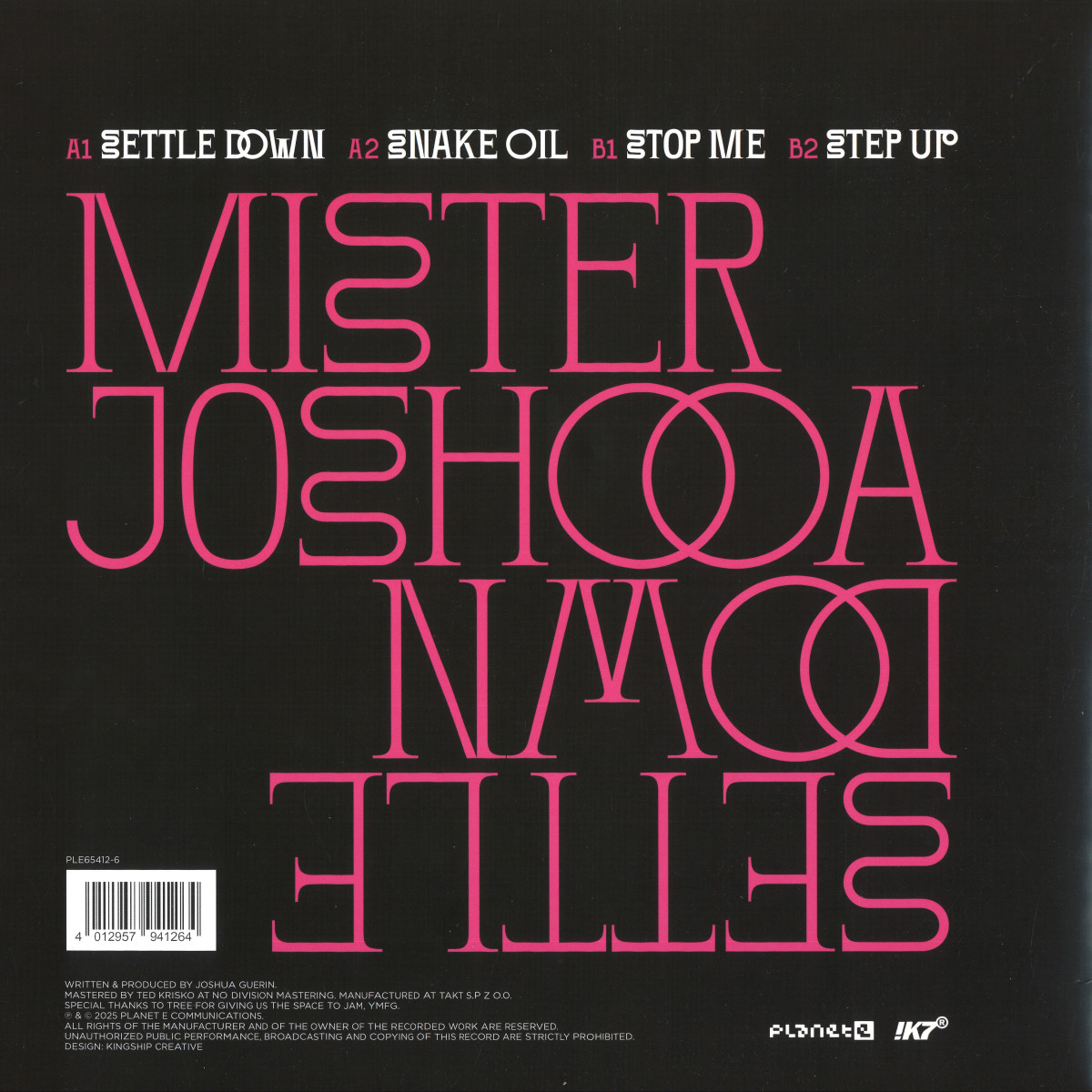 ‘Stop Me’ continues to drive Mister Joshooa’s productions in even wonkier, even mysterious directions, its oscillating crawl and hypnotic melody primed to create a heady atmosphere, giving surreal or even sinister, depending on each dancer’s perspective. Finally, ‘Step Up’ offers the roughest, readiest ride to close, where classic drum machine programming reverberates against throbbing sonics and all manner of analogue weirdness, transforming into an outsider techno stepper from the darker side.