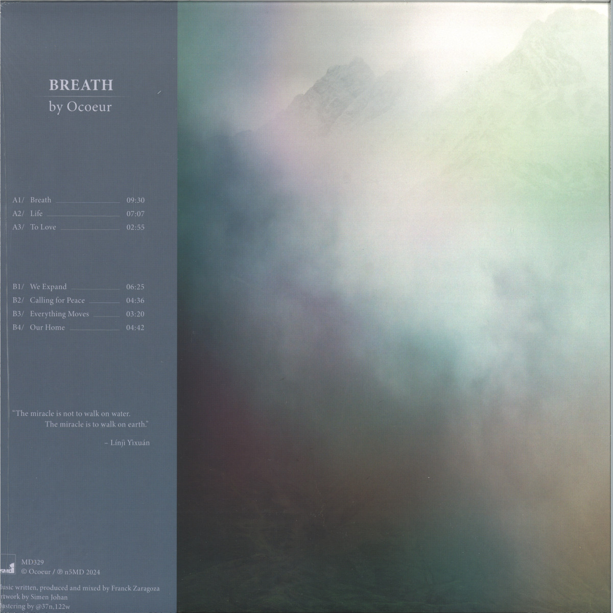 "Breath," the latest album by Bordeaux-based producer Franck Zaragoza under his Ocoeur project, is a heart-felt tribute to these earthly wonders. This album, perhaps his most sincere and ambitious to date, comprises seven tracks that reflect Zaragoza's deep appreciation for the world around us. "Breath" is tranquil, peaceful, and meditative, yet its expansive, cinematic scope evokes vivid images of Earth's stunning landscapes. The album is both elegantly captivating and a poignant call for peace on our planet.