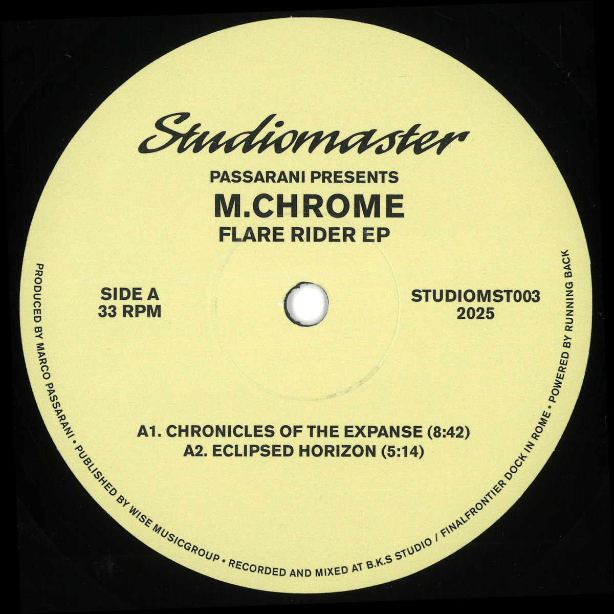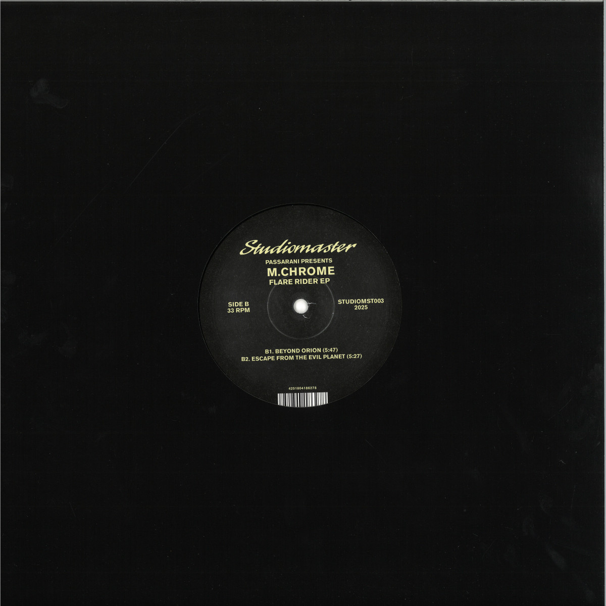 The third offering from Marco Passarani's Studiomaster label heralds a significant return: M.Chrome. Absent since 1994 when it debuted on Alan Oldham's Generator, this alias is resurrected to explore new sonic frontiers. While its roots subtly echo a certain legendary Detroit imprint, "Flare Rider" stands as a testament to evolution. This isn't just an EP; it's a series of compelling sonic narratives, guiding listeners through techno and house territories. Expect subtle acid inflections, deep cosmic voyages, and a powerful, melancholic harmonic core that defines its distinct planetary landscapes. Best experienced as the sun begins to rise and the vision of distant planets starts to fade!