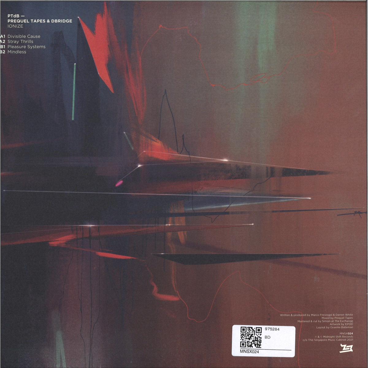 A bridging of minds and energies, a confluence of souls and spirits. Midnight Shift releases an exclusive collaboration between Prequel Tapes and dBridge - Ionize. Cast all genres aside, as two electronic worlds collide to produce a third sonic space.