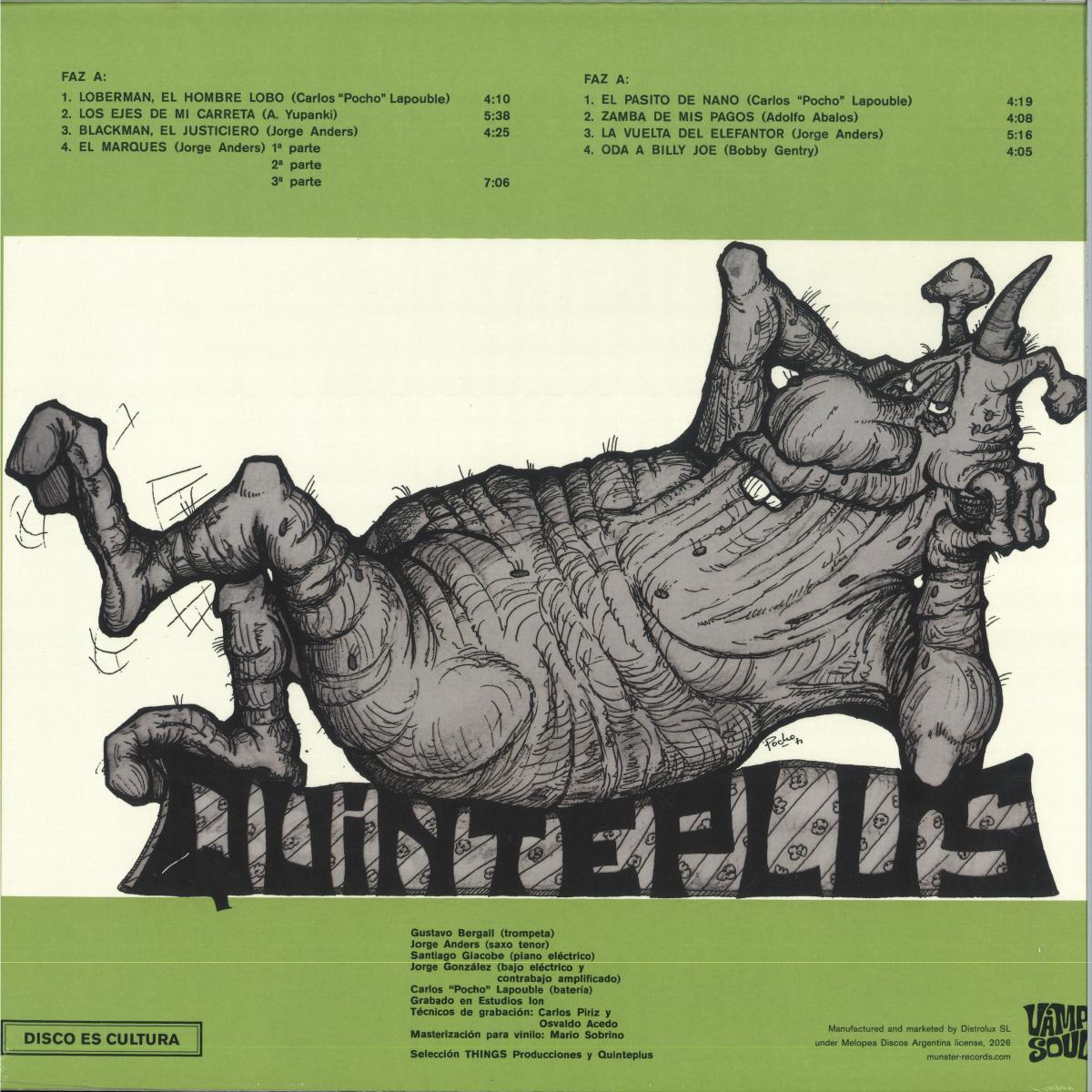 In 1971, Quinteplus recorded its first and only studio album for EMI. The original lineup featured Jorge Anders on tenor saxophone, Bergalli on trumpet, Giacobbe on keyboards, González on upright and electric bass, and Norberto “Pocho” Lapouble on drums and percussion—who also illustrated the album’s iconic sleeve. The record is a refined showcase of the band’s musical vision: original compositions, fluent jazz language, folk-derived rhythms, funky electric textures, tight ensemble playing, and standout brass solos. Though critically praised, the album received little label support and sold modestly, eventually becoming a sought-after collector’s item.
