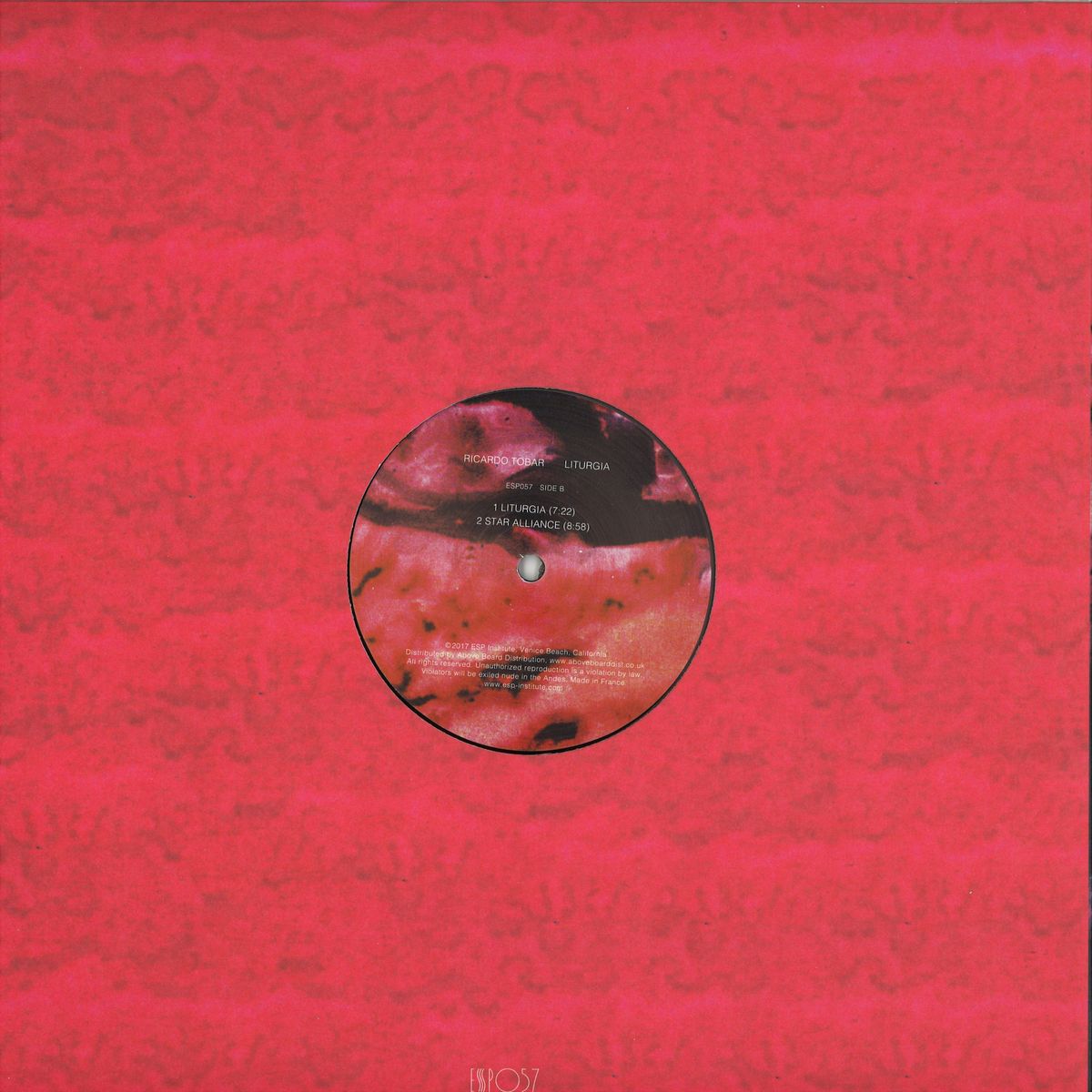 excites us at the ESP Institute, the 'A plus B that equals 3'. We hear this in Ricardo's music — the Latin American instinct in his drums and percussion, sometimes tightly aligned with body movements and other times hauntingly mis-aligned and chaotic, intersects with his rock influence of ethereal (micro) melodies that slowly layer and layer until we're climbing a glorious (macro) wall of sound — but most importantly we hear where these different parts of his life come together to further create one unique voice. On both sides of his ESP Institute debut Liturgia, Tobar couples one pulsing dance-driven track with another atmospheric and immersive track, requiring we educate ourselves in the polarity of this language he's building, one that will expand to tell a broader story later this year with his debut album. We welcome Ricardo Tobar, another forward-thinking artist, to the ESP Institute, and are proud to support any direction his compass points from here, as we believe he'll never follow but will always lead.
