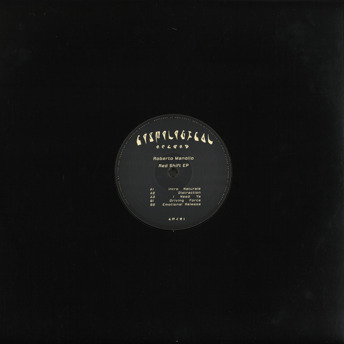 2Cosmological Record begins its journey with Red Shift EP, five original tracks produced by Roberto Manolio, with an experimental touch and abstract-style artwork by the young and talented Luca Maestro. Techno and house imprint for the first chapter, with various nuances ranging from acid to deep house, with a touch of electro and minimal sound,unite to sensual, thoughtful and direct vocals.
