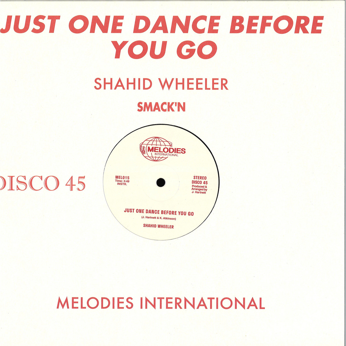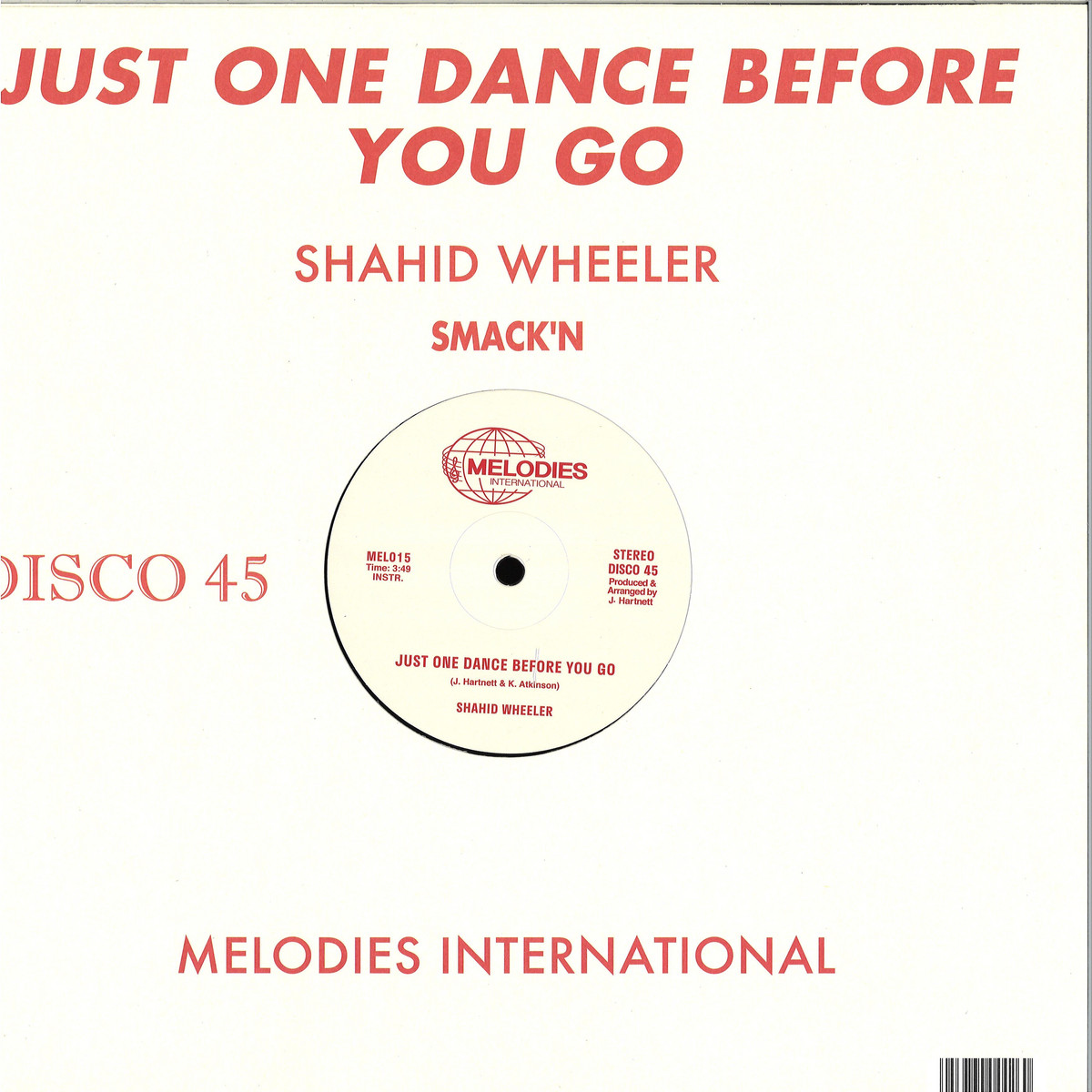 With MEL15 - Melodies International is honoured to bring forward its latest disco 12 reissue single and another You're a Melody peak time classic: Shahid Wheeler - Just One Dance Before You Go.
