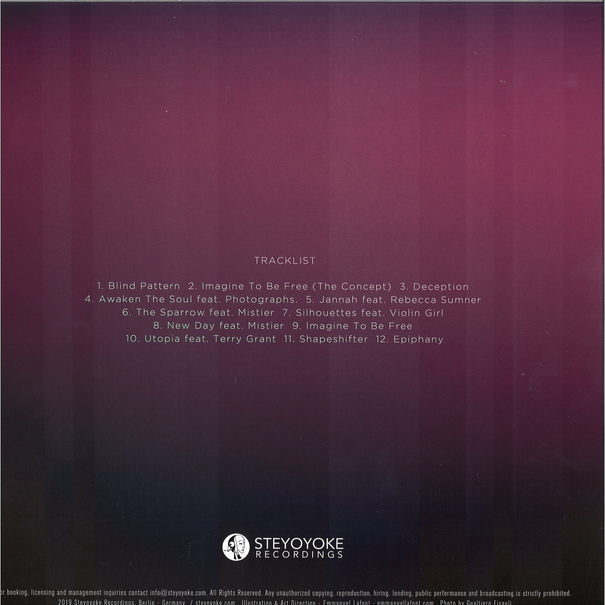 The journey begins with “Blind Pattern”, which delivers a mysterious vibe, preparing you for an eye-opening voyage. “Imagine To Be Free” (The Concept) featuring Terry Grant and written by Soul Button, will take you to another dimension. A place where you face your own fears to avoid being succumbed to the falsities of the world. “Deception” transports you deeper towards your awareness and realization of deceit, yet spreading your wings, ready to take flight. The journey towards freedom begins with the following tracks - “Awaken the Soul” featuring Photographs., “Jannah” featuring Rebecca Sumner and “The Sparrow” featuring Mistier. An enchanting field of vocals, gradually delivering an electrifying feeling that increases from one song to another. “Silhouettes” featuring Violin Girl, uplifts your mind and soul. “New Day” featuring Mistier and “Utopia” featuring Terry Grant guides the way to enlightenment. “Imagine To Be Free”, the non-vocal track, leaves you the choice to interpret and feel. “Shapeshifter”, a melodic and delicate track that serves as a passage to the final track, “Epiphany”. A sudden revelation of becoming free comes to surface, ending the voyage and expressing the meaning of freedom.