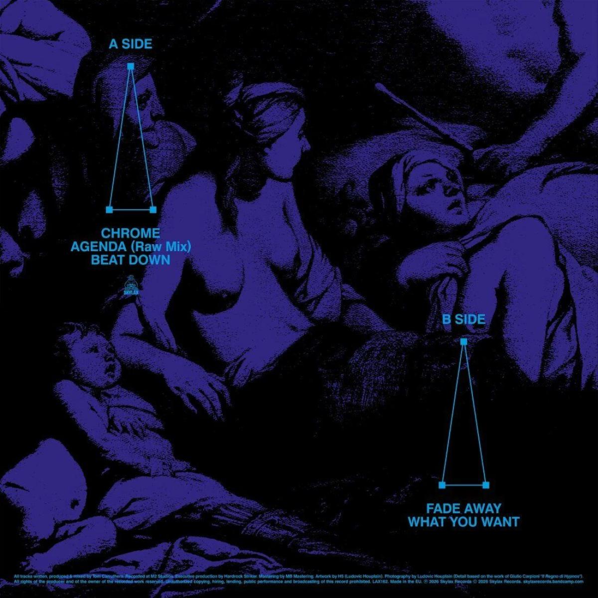 89With Agenda EP, Tom Carruthers closes a landmark trilogy on Skylax Records, following Neutralise EP and Deepline. Three records. Fifteen tracks. One coherent vision of machine-driven house music stripped to its raw, functional core. This final chapter dives deeper into direct, club-focused energy, where groove, repetition and tension do the talking. Agenda is less reflective, more physical — built for movement, sweat, and long transitions in dark rooms. Opening track “Chrome” sets the tone: sharp drum programming, metallic pressure, and looping synth phrases that lock the body into motion. “Agenda (Raw Mix)” follows with a tougher, stripped-down approach — no excess, just pure rhythmic insistence rooted in early Chicago jack and warehouse discipline. “Beat Down” pushes further into machine funk territory, where relentless patterns and rugged textures meet in hypnotic repetition. On the flip, “Fade Away” brings a deeper, moodier tension — a late-night track where subtle emotion seeps through minimal structures. Closing cut “What You Want” is classic Carruthers: jacking drums, understated melody, and a groove that feels timeless rather than retro. As with the previous releases, the visual identity is handled by H5, whose modernist, reduced artwork mirrors the sonic philosophy: clarity, impact, and purpose. Agenda EP completes the Skylax trilogy as a statement of intent — not revivalism, not nostalgia, but dance music reduced to its essential elements.