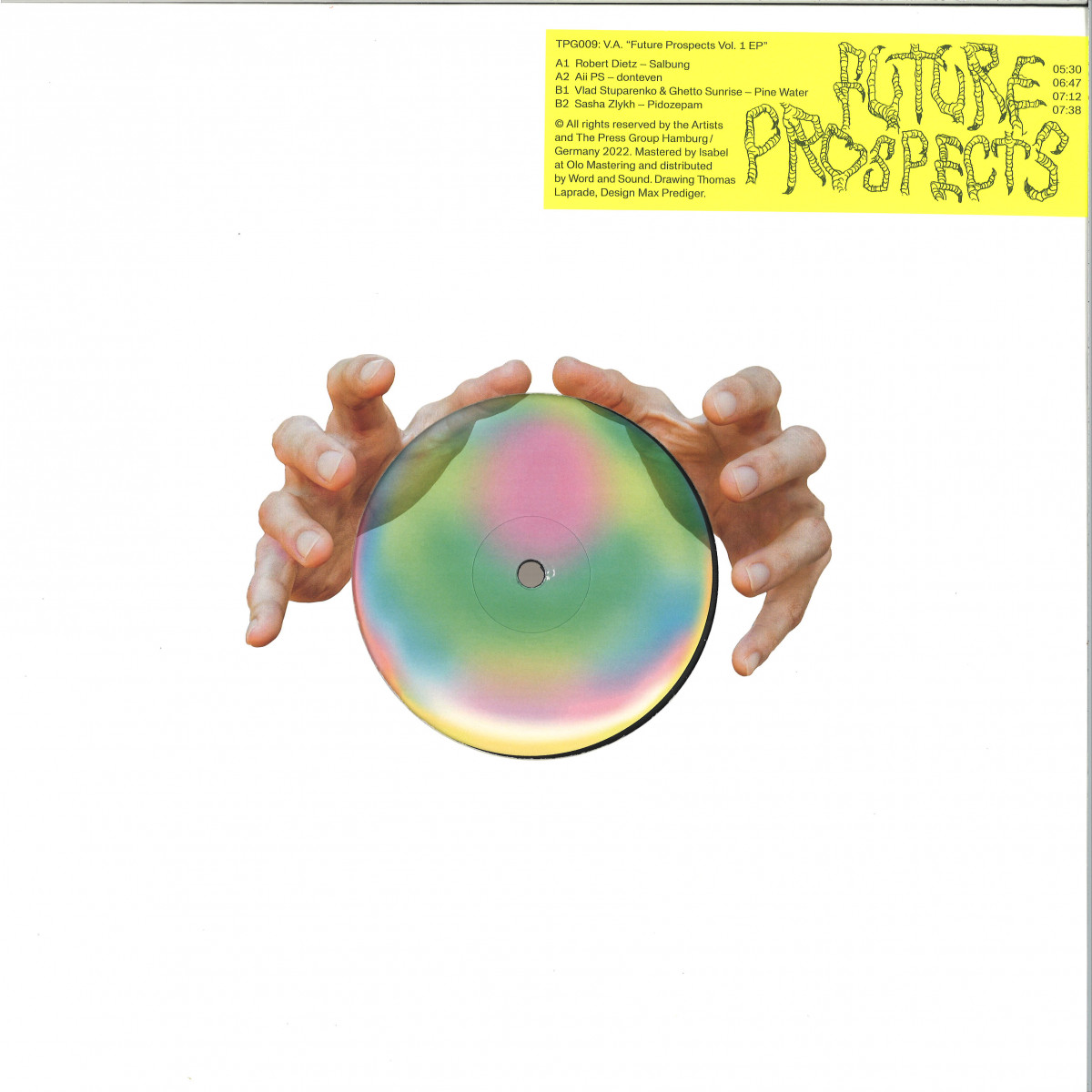 Pulsating to the bone, "Future Prospects vol.1" showcases a quartet of heaters courtesy of Germany-based Robert Dietz and Aii PS on the A-side and Kyiv-based Vlad Stuparenko & Ghetto Sunrise plus Sasha Zlykh on the flip. Either sides of the