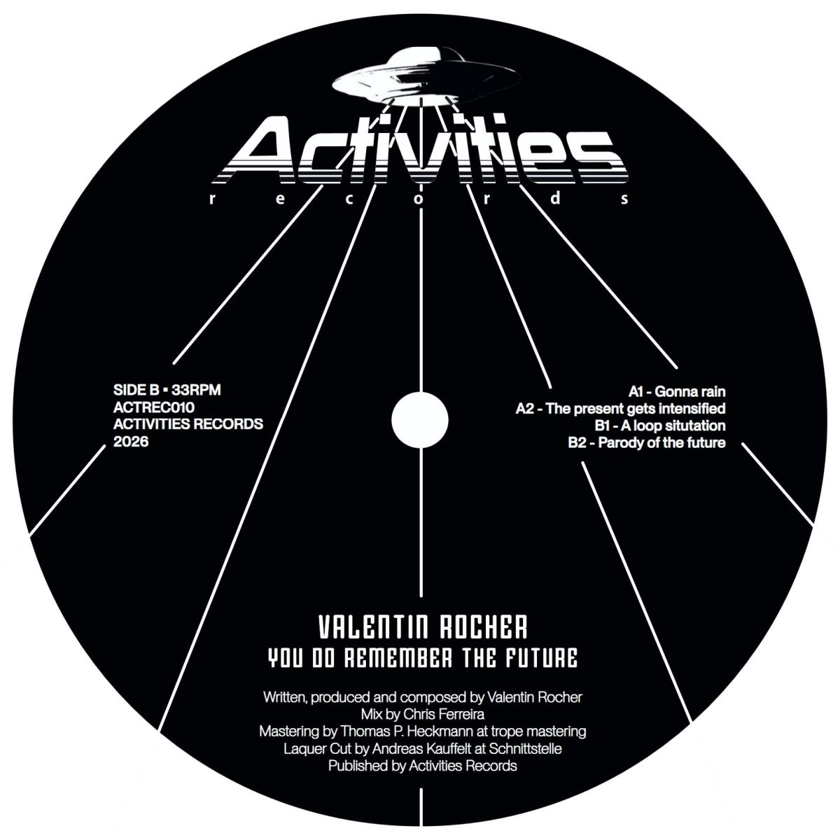 5Driven by relentless acid lines, ambient layers and grainy textures, Valentin Rocher takes us into his perception of a world that is at once poetic and mundane, dark and radiant. Through electro and techno tracks interspersed with voice samples and intense acid lines, You Do Remember the Future is the soundtrack of a present that parodies the future. A foretold dystopia whose repetition might just ward off its fate.