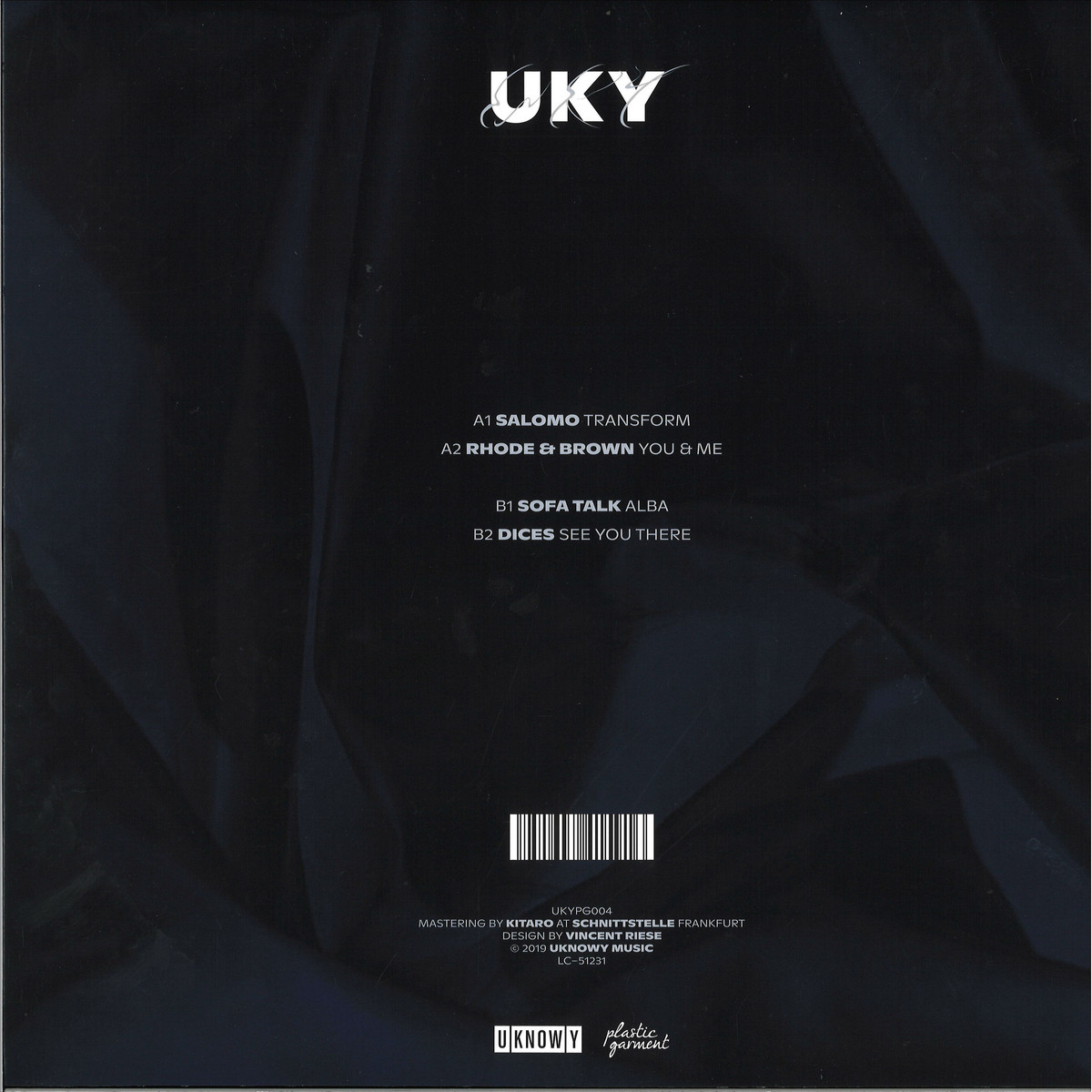 UKNOWY music is back with a new installment on its more house-leaning "Plastic Garment" vinyl series. This time the EP title is "Midnight Impulse" as every track carries the treats of nocturnal life: it's dark, it's fresh and it's open to all possibilities! Starting with Salomo we have a delivery of a definite club banger with "Transform" - devotees of the likes of Kyle Hall or Steven Julien/Funkineven will definitely get their fancy tickled here. Next comes Italian break-beat maestro Sofa Talk with a rhythmically sophisticated yet deep "ALBA", much in the vein of earlier Plastic Garment releases. Munich house duo Rhode & Brown starts the B side with "You & Me" building intricate synth arpeggios over catchy chords. St. Petersburg's very own Dices closes things off with his more dreamy and at the same time incredibly complex and beautiful "See You There" - a track for the listener or the later hours of the night.