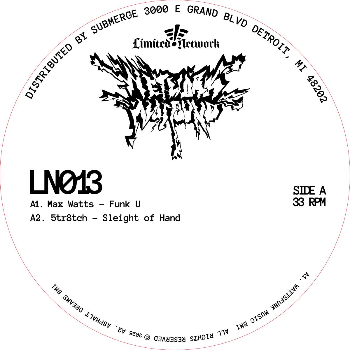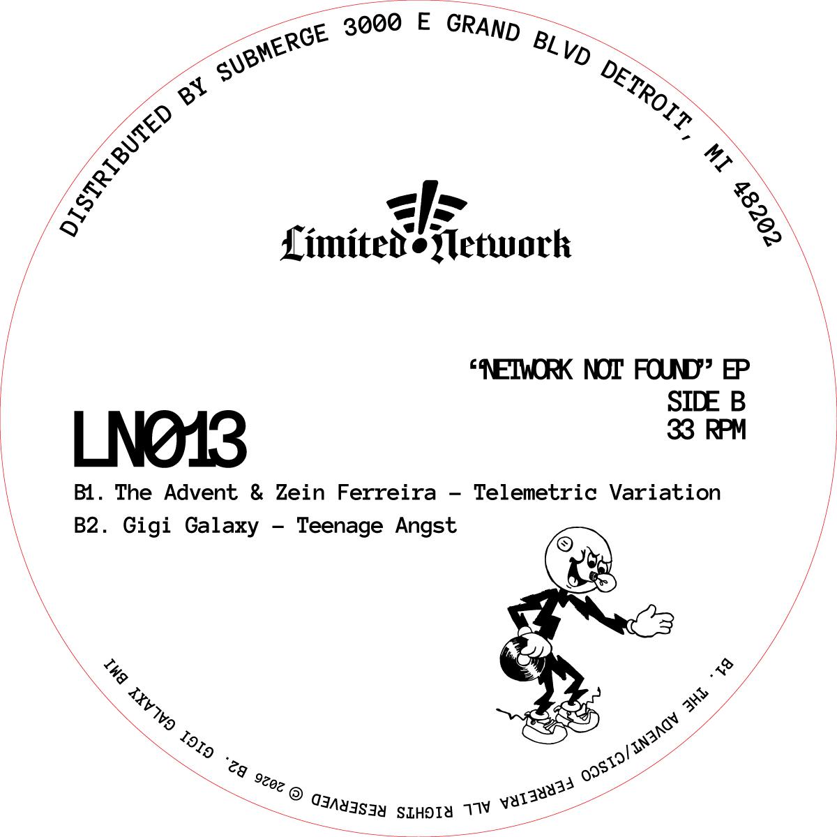 LN013 presents a four-track electro compilation entitled Network Not Found. On the A1, Watts provides an electro-funk workout reminiscent of early Kraftwerk. Modulating basslines, delayed breakbeats, and haunting synths call back to early tropes of the sound while contributing to and reinventing the style. LA's 5tr8tch debuts his future classic, "Sleight of Hand." This track delivers tight 808 programming and unique sound design that takes the listener on a timeless journey. The B1 features The Advent and Zein in classic Kombination Research fashion—advanced B-side business for true lovers of the movement. Pulling from the Teknotika archives, GiGi Galaxy provides a rare DAT recording from 1997. The track's growling bassline, warm 808 beats, and experimental sound design take the listener on an ever-changing journey.