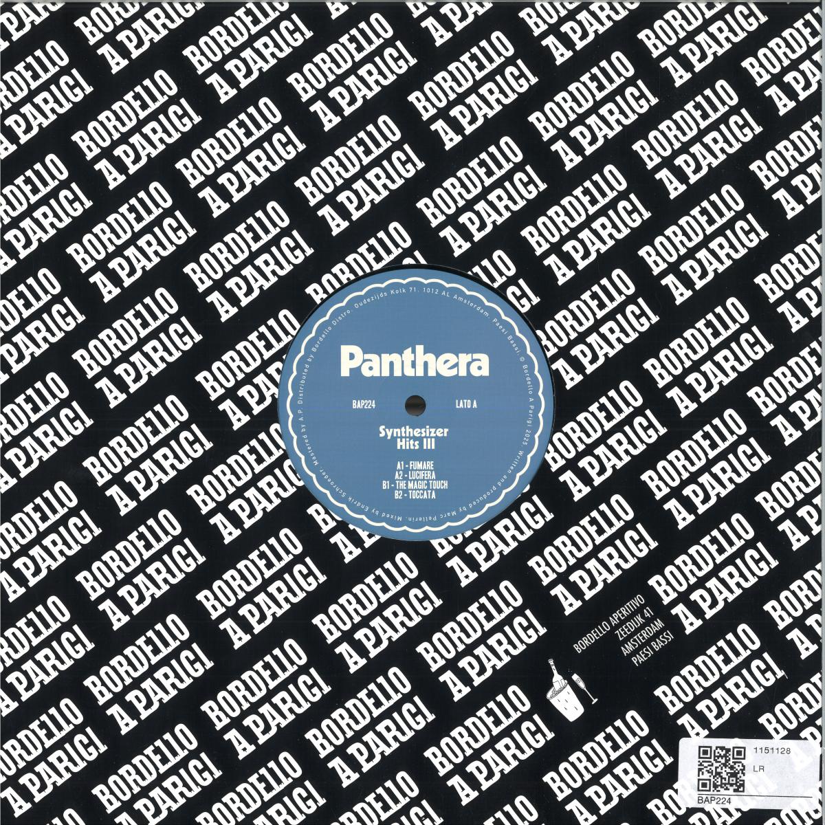 115Panthera is back at the Bordello with his most energy-packed release to date. Synthsizer Hits III is forged in the heat of Hi-NRG, the romance of italo and the daring synthesizer hooks of 1980s Europe. A thick rasping beat pounds above a juddering arpeggiator line before hedonistic surges ignite “Fumare”, an achingly addictive opener. Vocals are toyed with, used to increase the potency of the chosen machines and sounds. A circling chant infects “Lucifera” as a joyous melody takes hold of this modern Summer anthem, euphoric notes ushering in the dawn while speakers and strobe throb. There is a palpable power that permeates the 12”. “The Magic Touch” sends strings sailing skyward as rich percussive textures take root below. From this fertile ground, a sensational ode to the synthesizer flowers. Vocoder lyrics, pulsating rhythms and keys that are truly fantastical. “Toccata” finishes this analogue celebration. Slow burning with disco inflections, this finale soon shows its true colours. Daring counter melodies frolic, from the elegant and refined to the brash and broad, in this mirrorball inspired last dance.